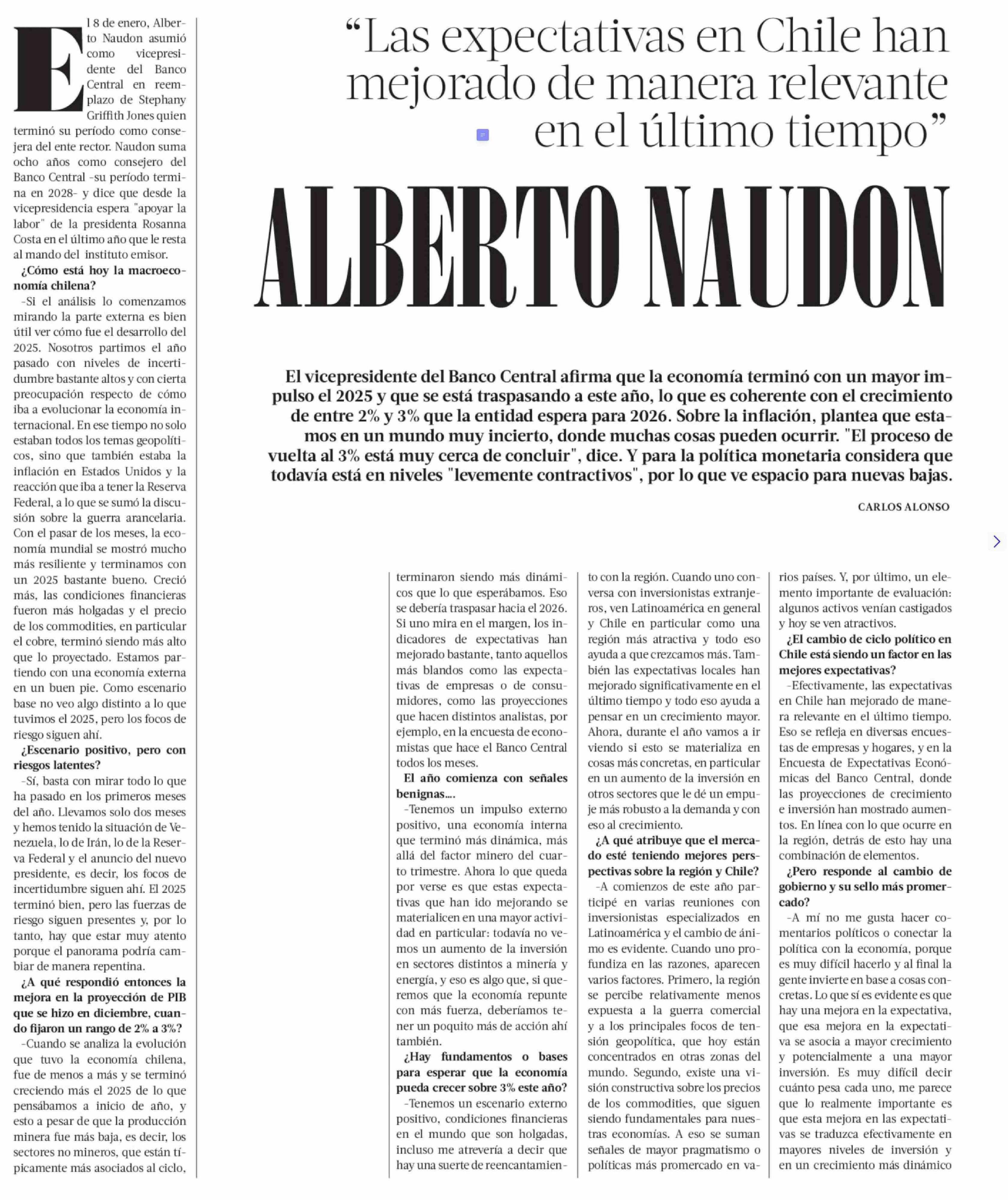 "Las expectativas en Chile han mejorado de manera relevante en el último tiempo" ALBERTO NAUDON 01-03-2026 La Tercera |