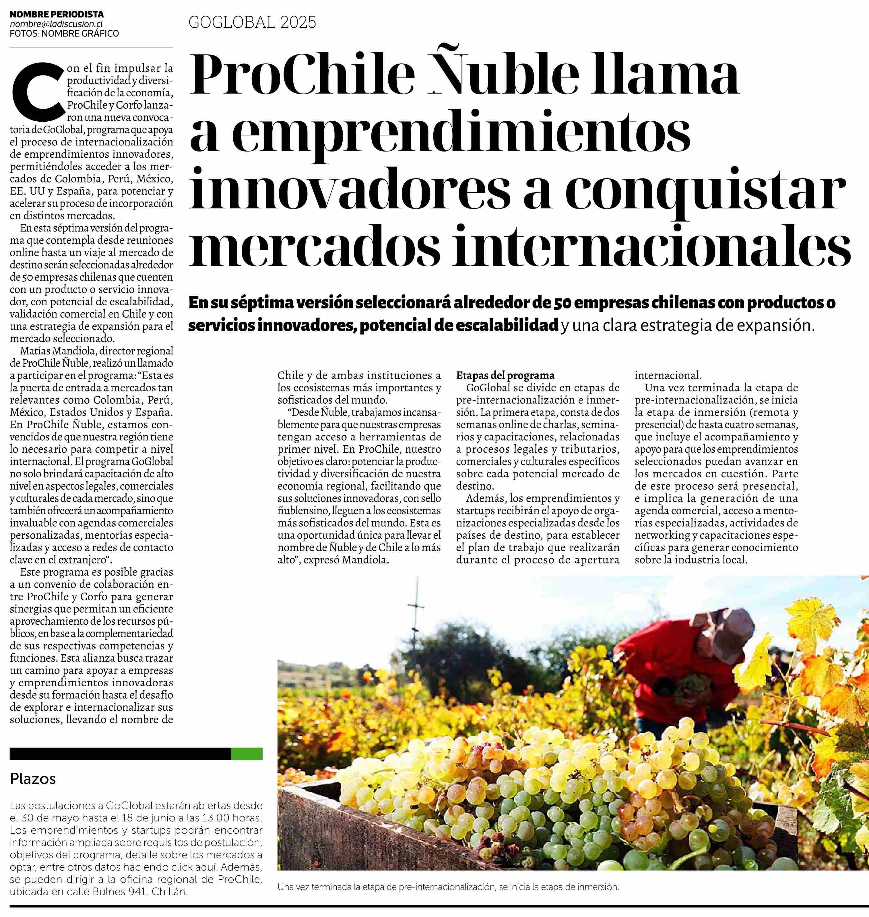 ProChile Ñuble llama a emprendimientos innovadores a conquistar mercados internacionales 11-06-2025 La Discusión |
