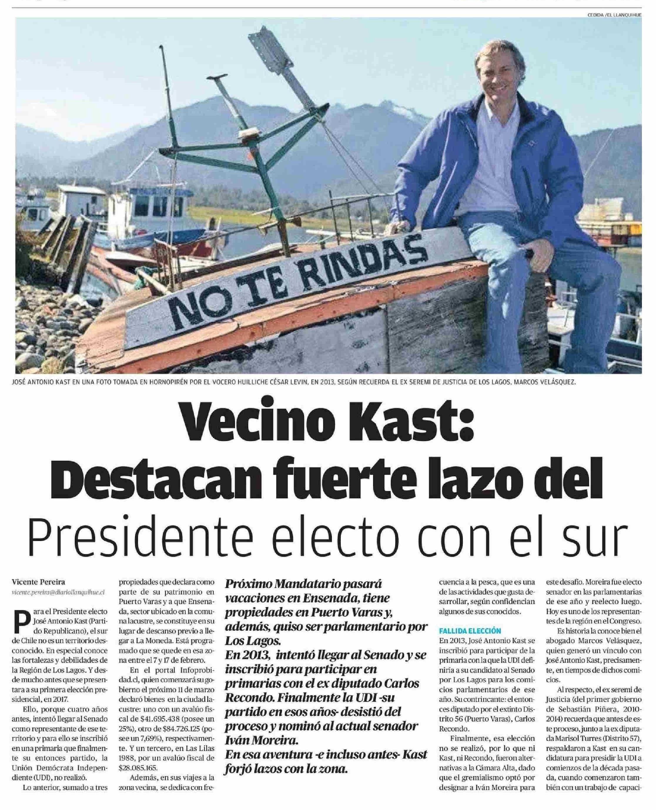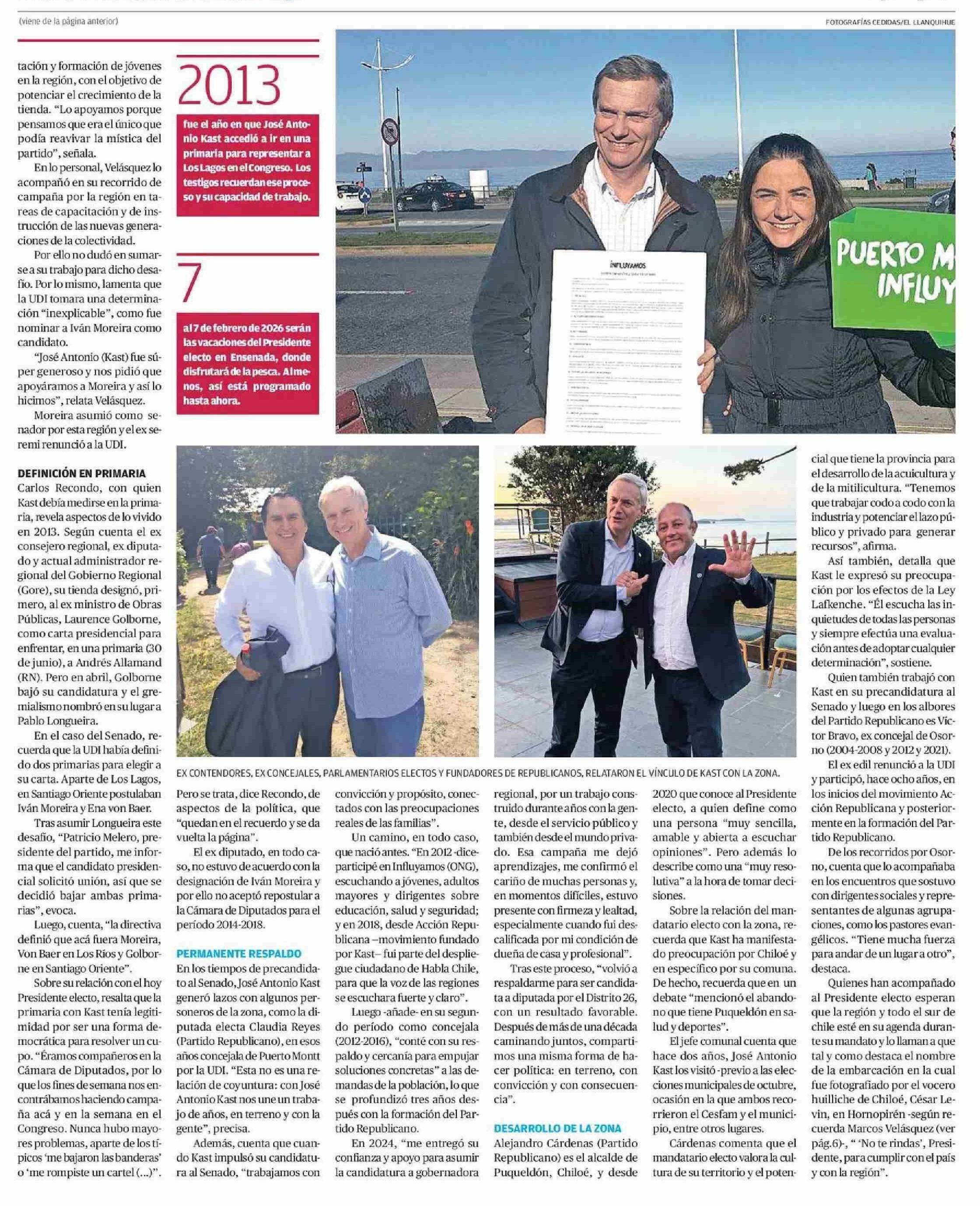 Vecino Kast: Destacan fuerte lazo del Presidente electo con el sur 25-01-2026 Diario Austral Región de Los Ríos |
