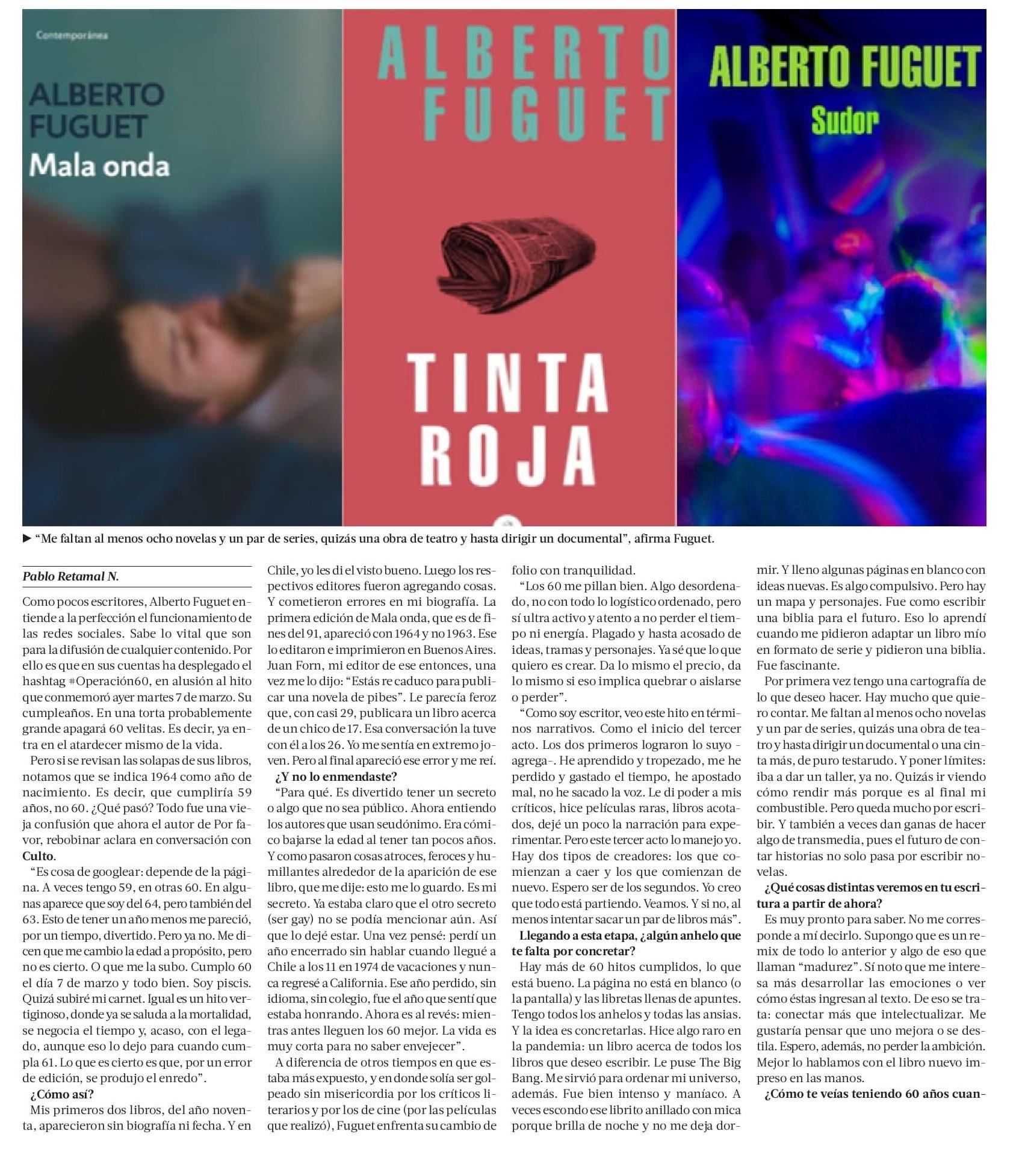 Alberto Fuguet llega a los 60 años: "La vida es muy corta para no saber envejecer" 08-03-2023 La Tercera |