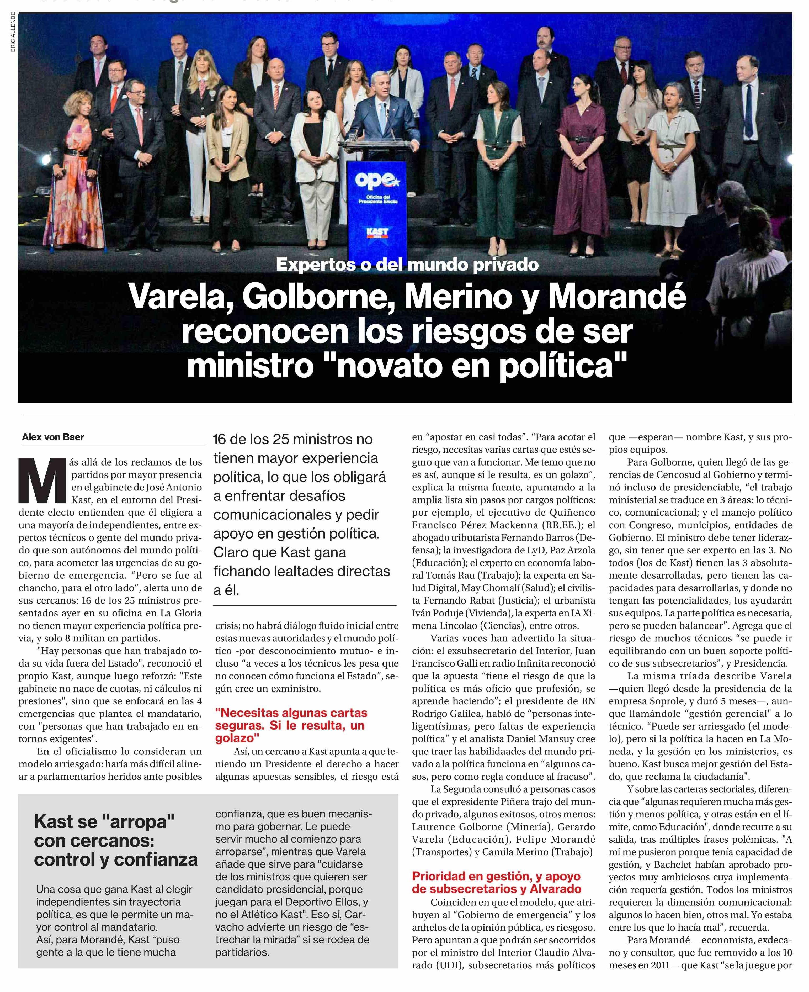 Varela, Golborne, Merino y Morandé reconocen los riesgos de ser ministro "novato en política" 21-01-2026 La Segunda |