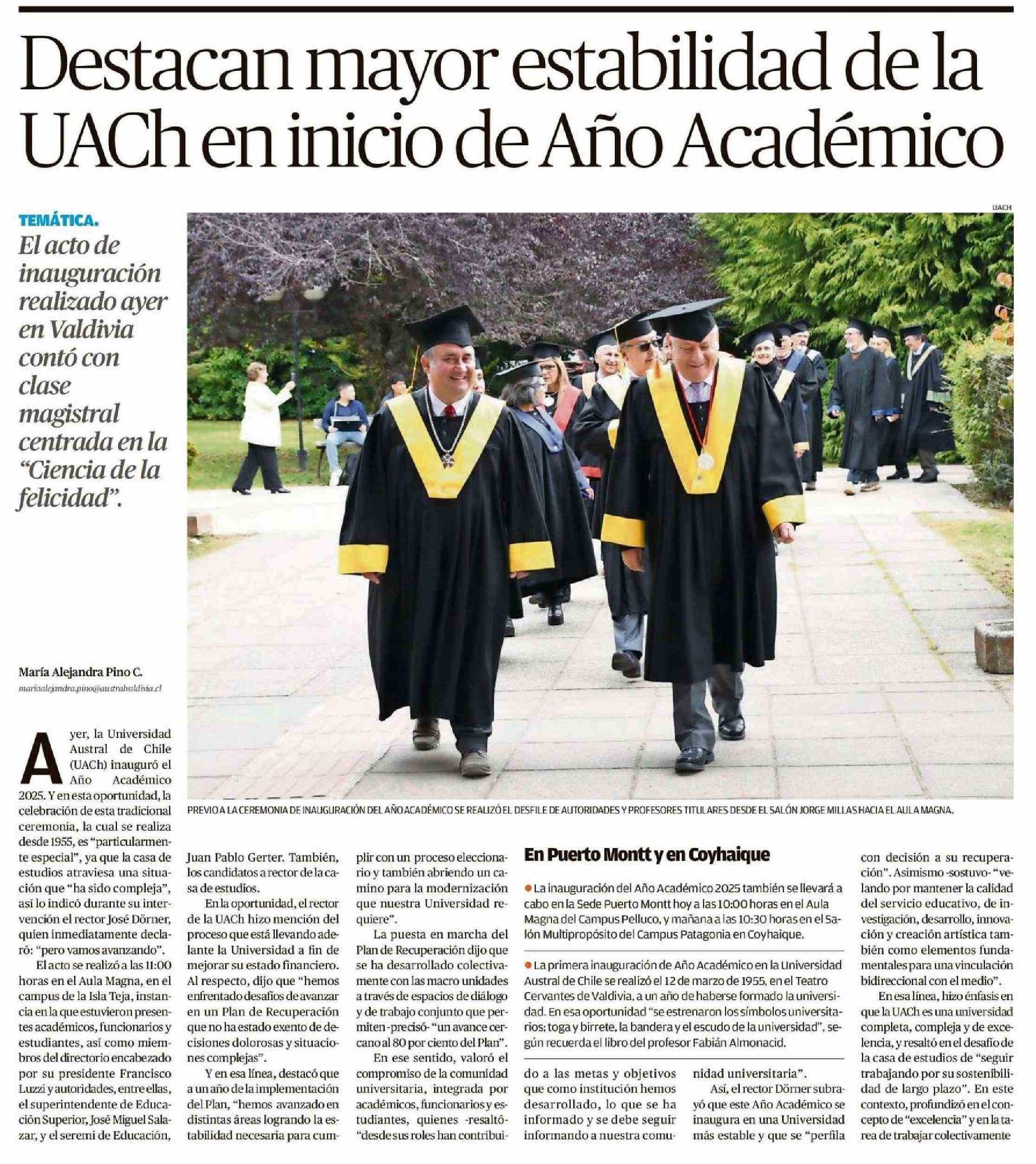 Destacan mayor estabilidad de la UACHh en inicio de Año Académico 10-04-2025 Diario Austral Región de Los Ríos |