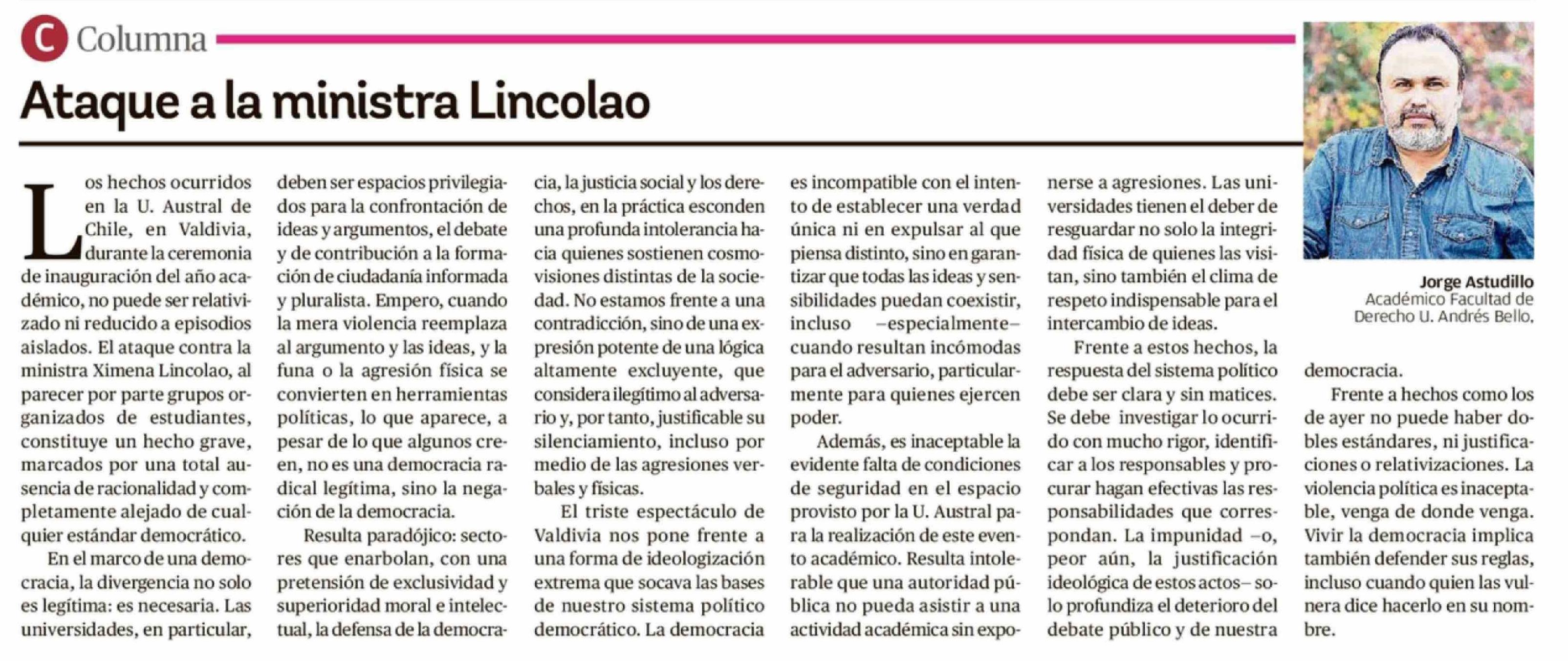 Columnas de Opinión: Ataque a la ministra Lincolao 10-04-2026 Crónica de Chillán |