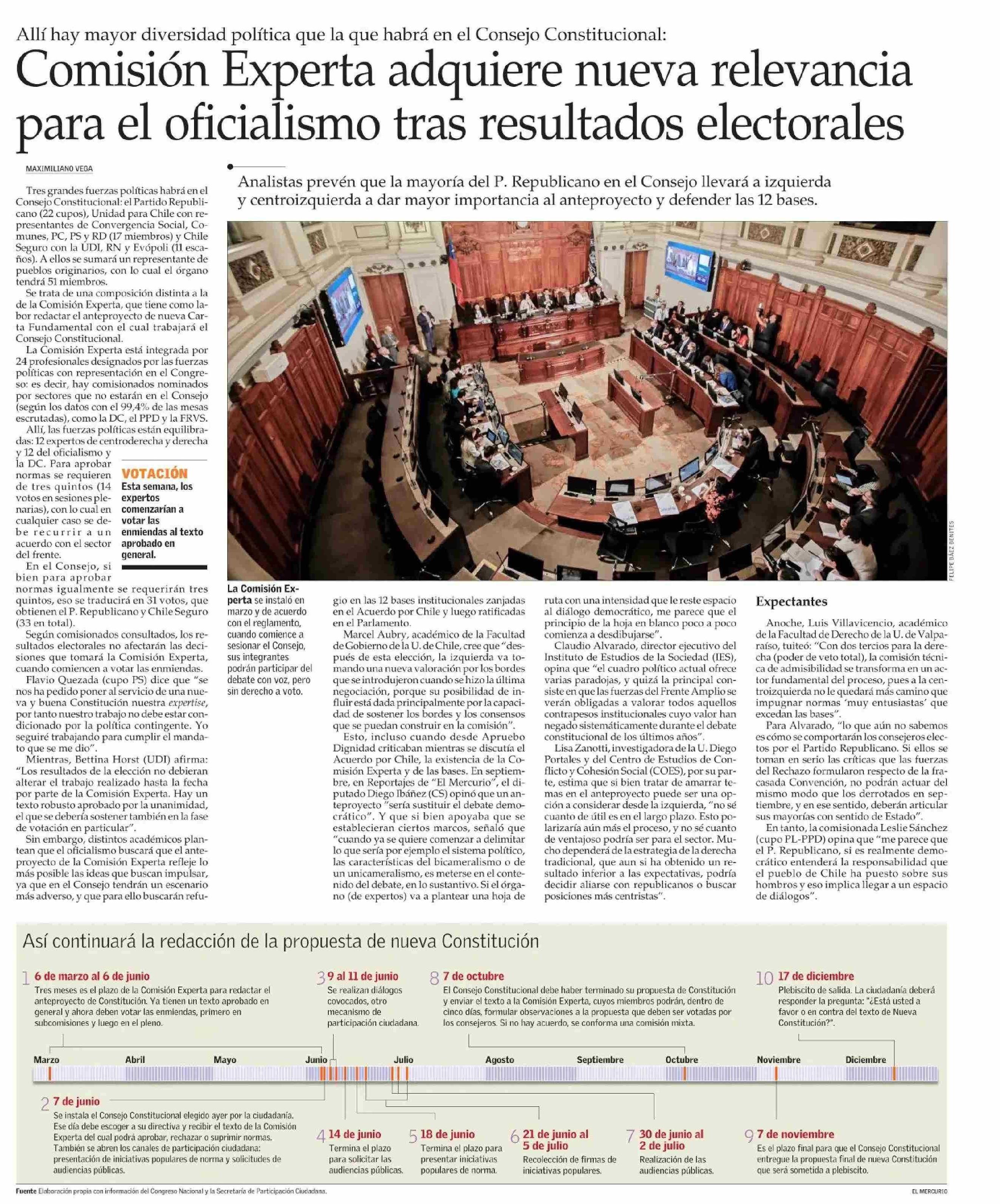 Comisión Experta adquiere nueva relevancia para el oficialismo tras resultados electorales 08-05-2023 El Mercurio |