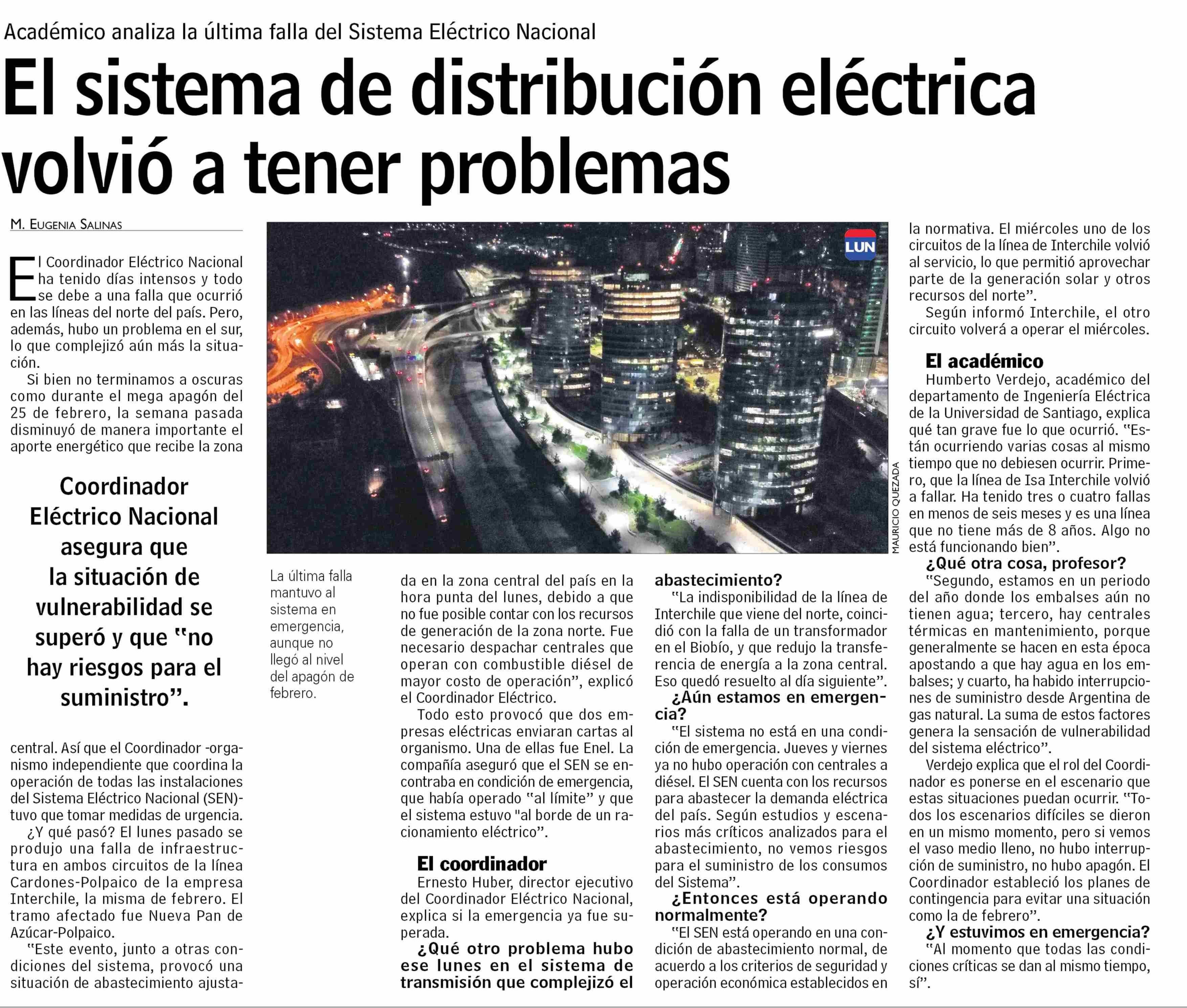 | Título: | El sistema de distribución eléctrica volvió a tener problemas |