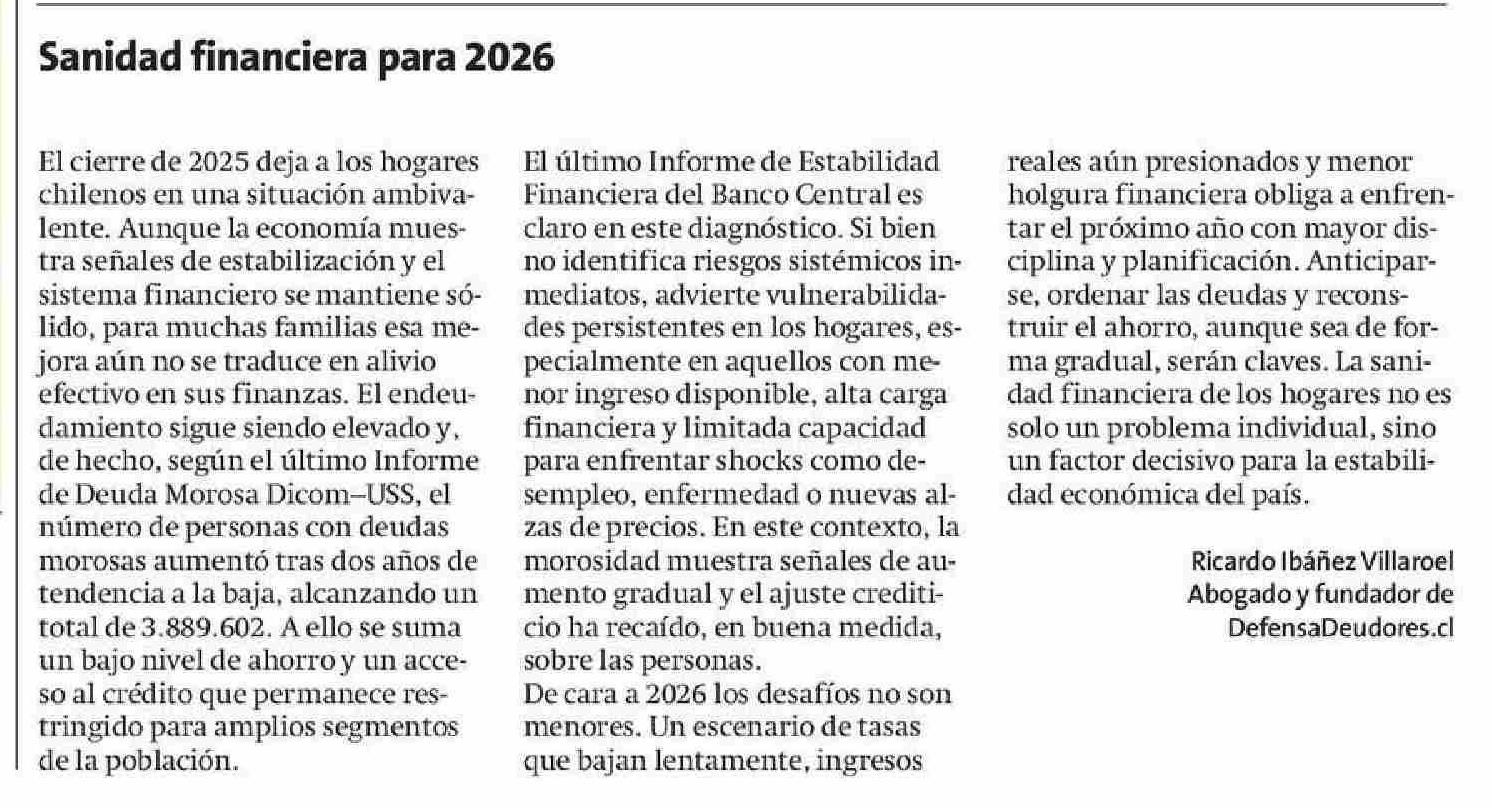 Cartas: Sanidad financiera para 2026