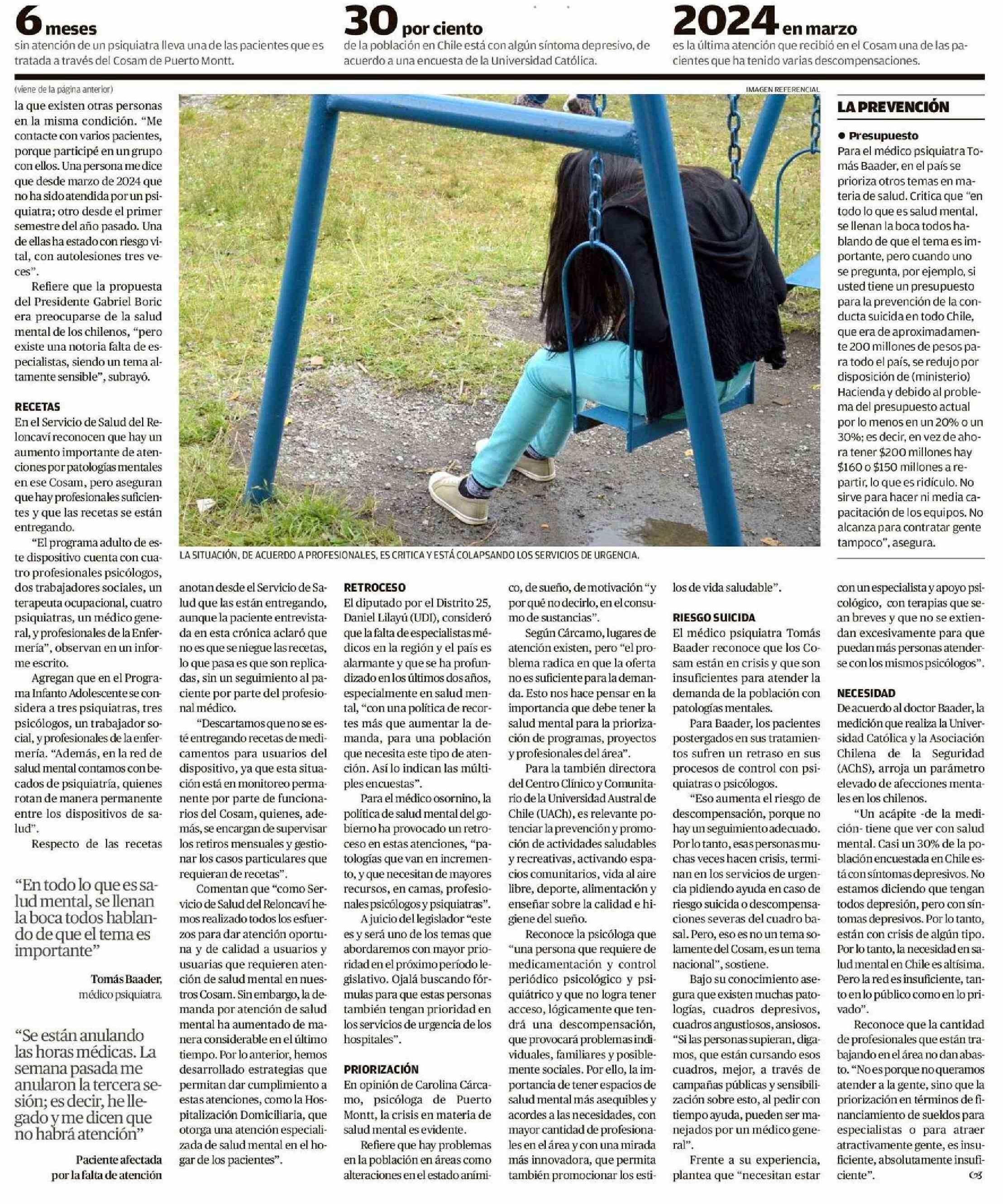 Salud mental: hasta 9 meses sin atención permanecen pacientes 06-02-2025 El Llanquihue |