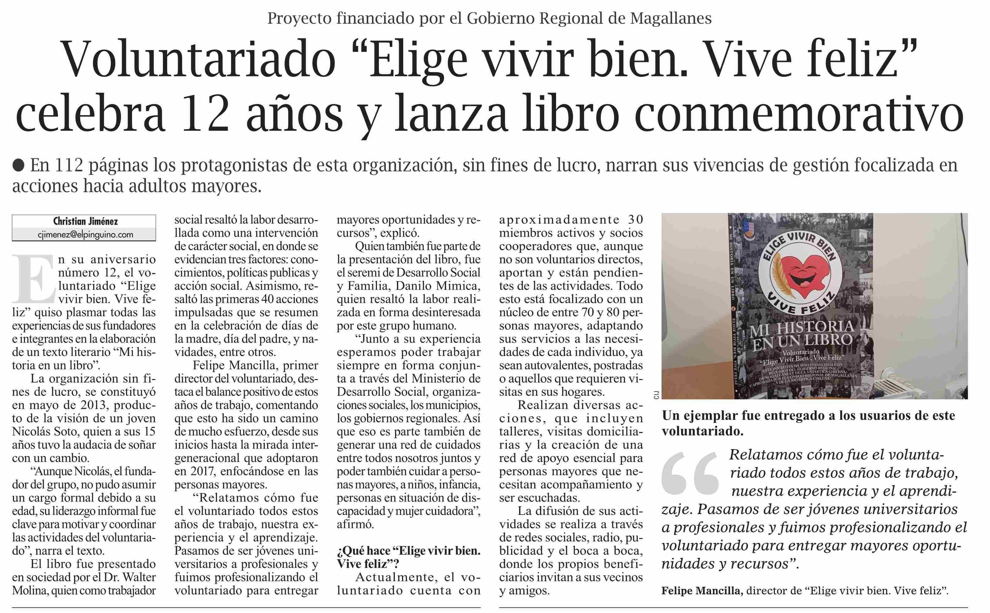 Voluntariado “Elige vivir bien. Vive feliz” celebra 12 años y lanza libro conmemorativo 03-06-2025 El Pingüino |