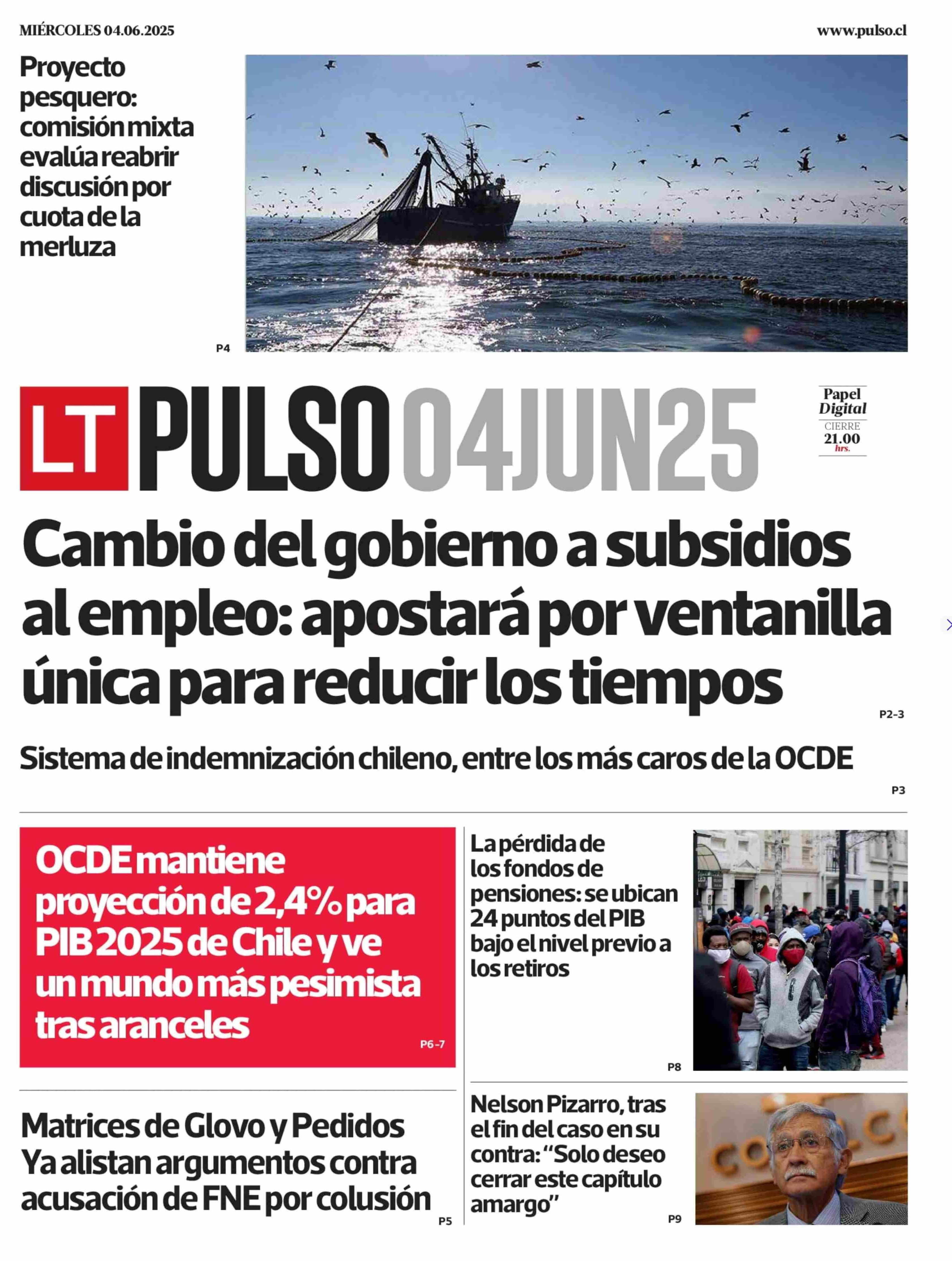 PORTADA LA TERCERA (PULSO) - CHILE 04-06-2025 La Tercera |