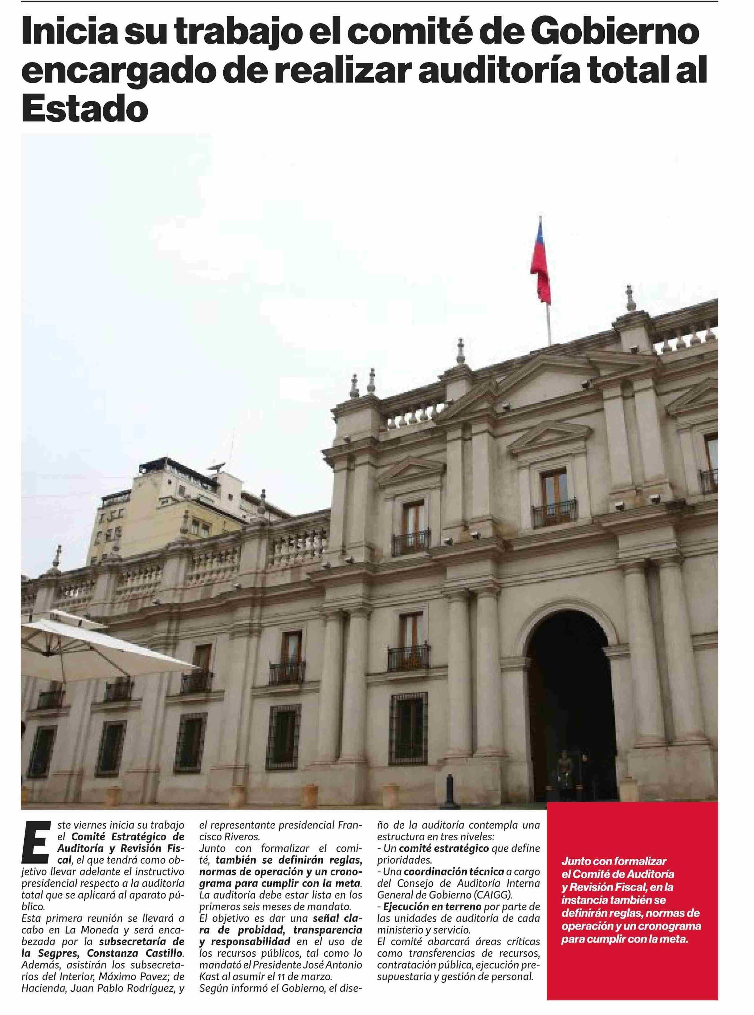 Inicia su trabajo el comité de Gobierno encargado de realizar auditoría total al Estado 20-03-2026 Puranoticia.cl |
