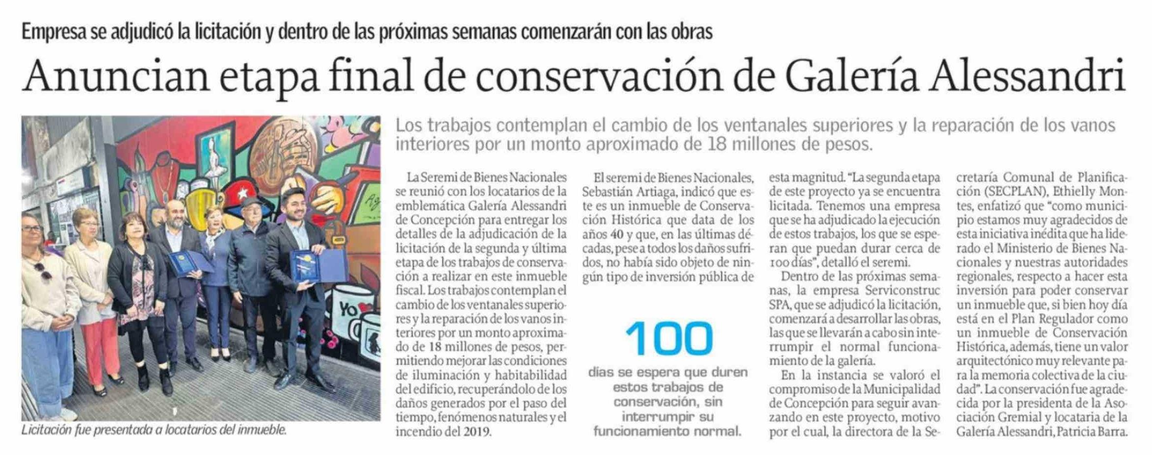 Anuncian etapa final de conservación de Galería Alessandri 04-03-2026 El Sur |