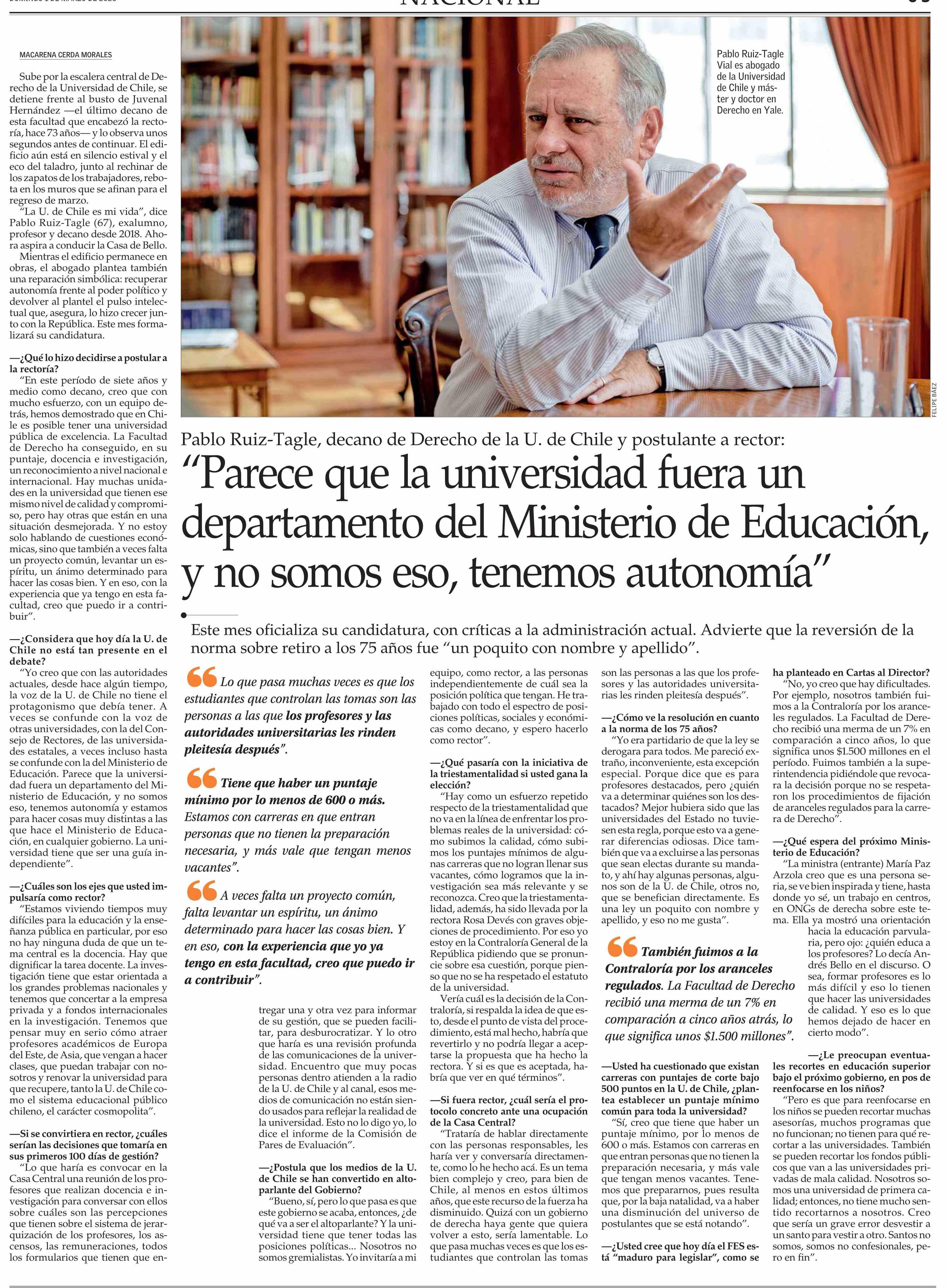 Título: “Parece que la universidad fuera un departamento del Ministerio de Educación, y no somos eso, tenemos autonomía”