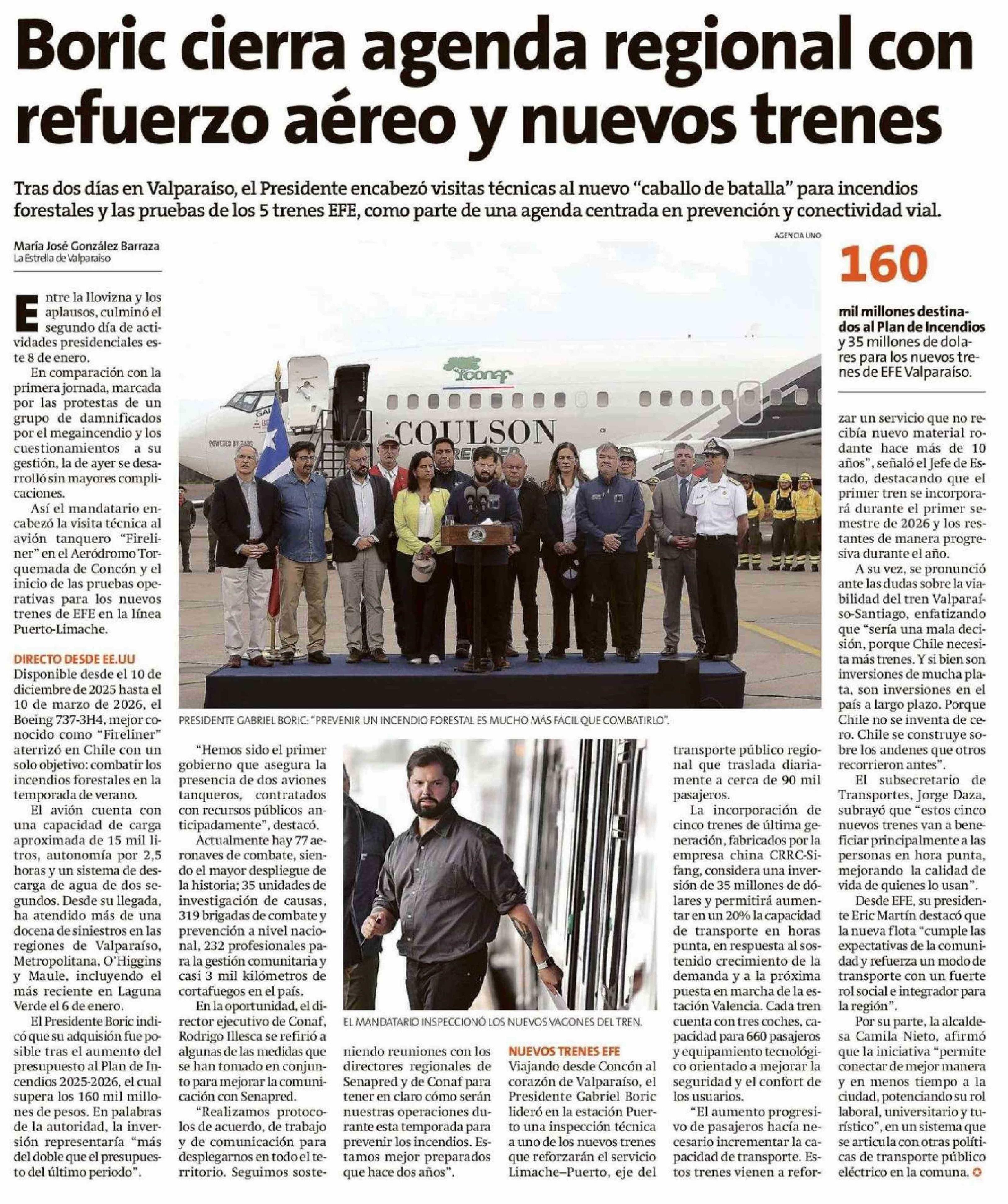 Boric cierra agenda regional con refuerzo aéreo y nuevos trenes 09-01-2026 La Estrella de Valparaíso |