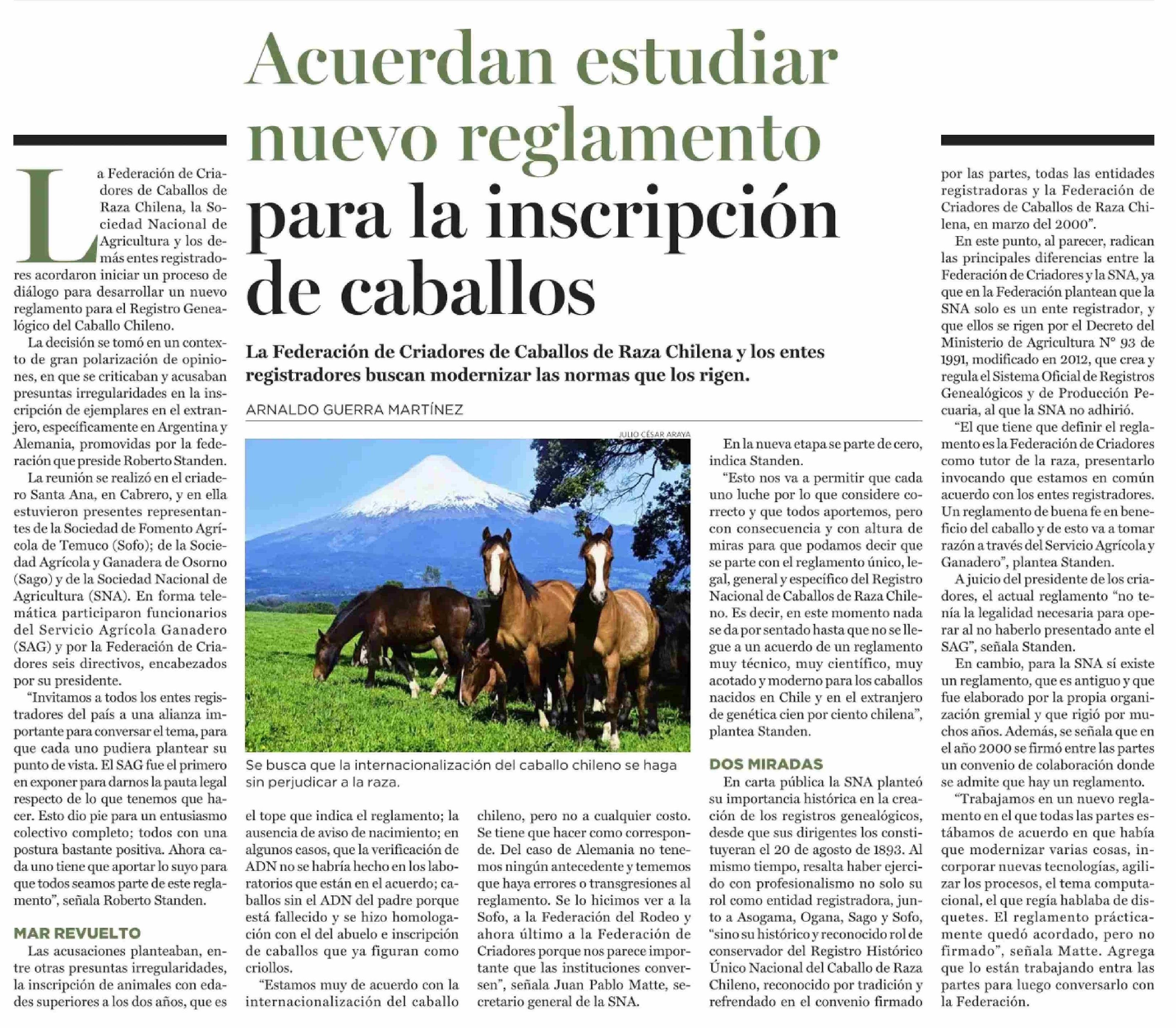 Acuerdan estudiar nuevo reglamento para la inscripción de caballos 20-04-2026 El Mercurio |
