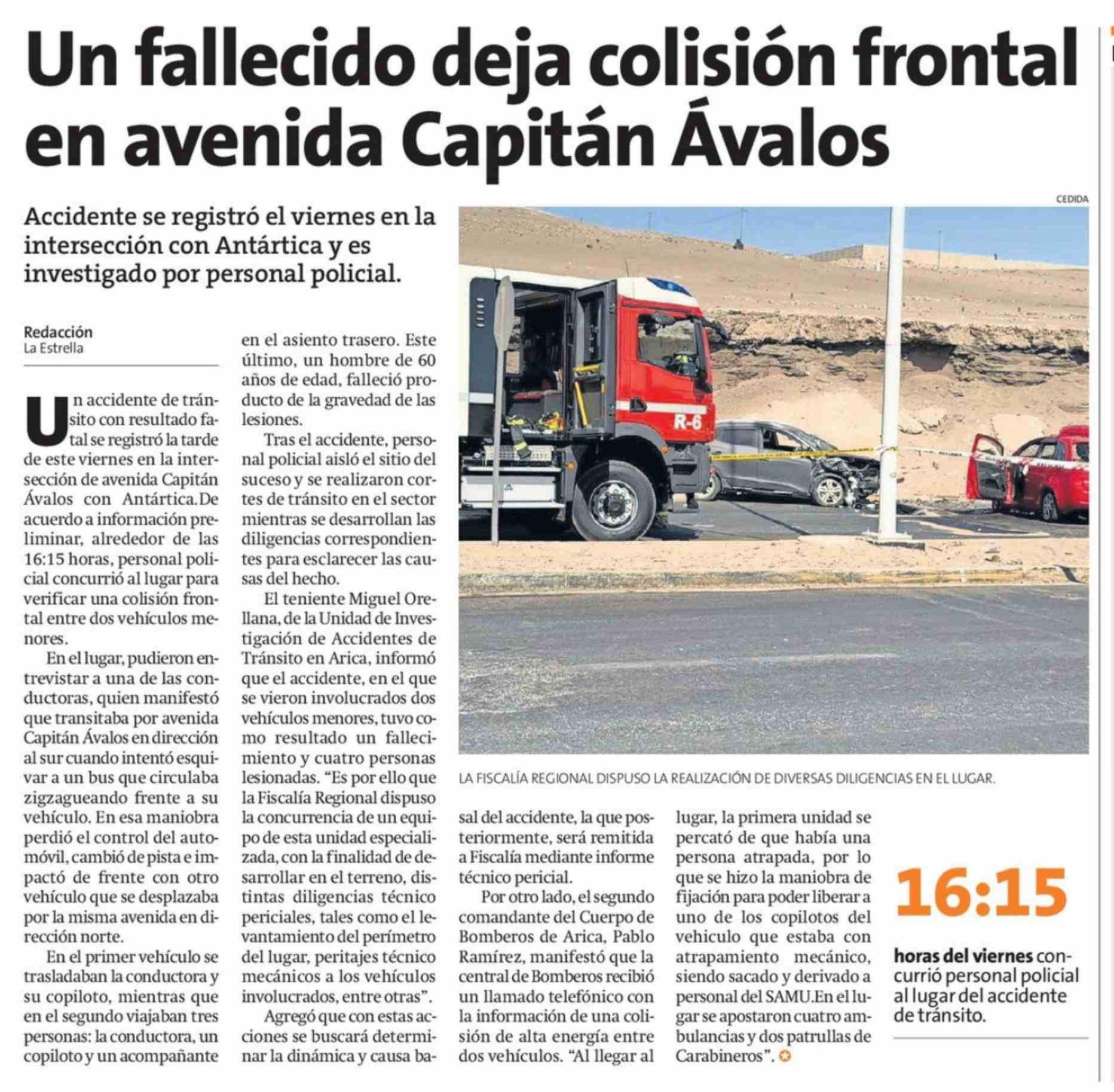 Un fallecido deja colisión frontal en avenida Capitán Ávalos 08-03-2026 La Estrella de Arica |