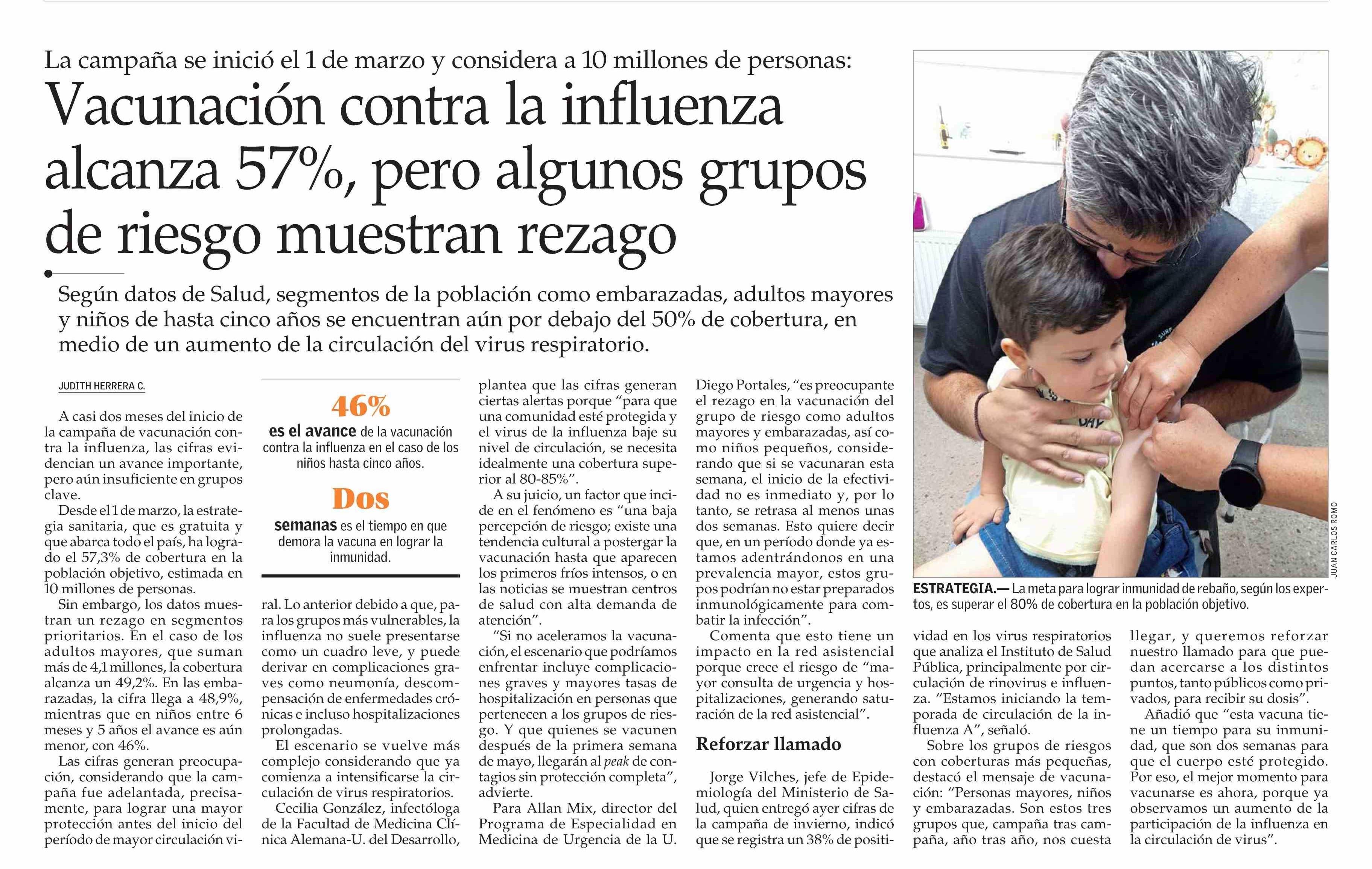 Título: Vacunación contra la influenza alcanza 57%, pero algunos grupos de riesgo muestran rezago