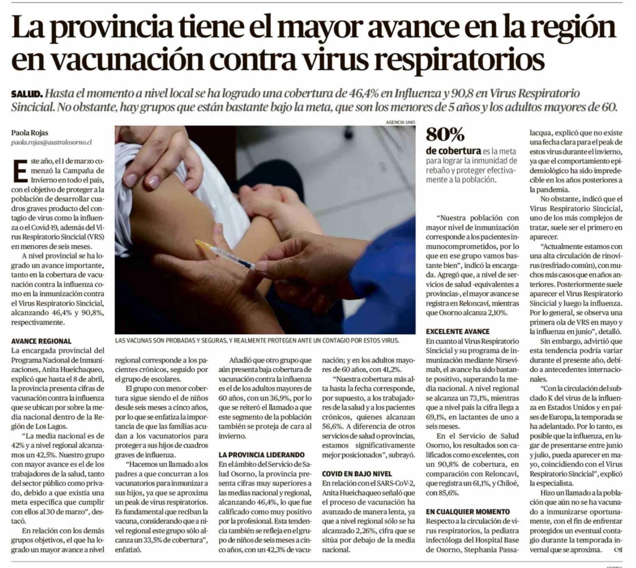 Título: La provincia tiene el mayor avance en la región en vacunación contra virus respiratorios