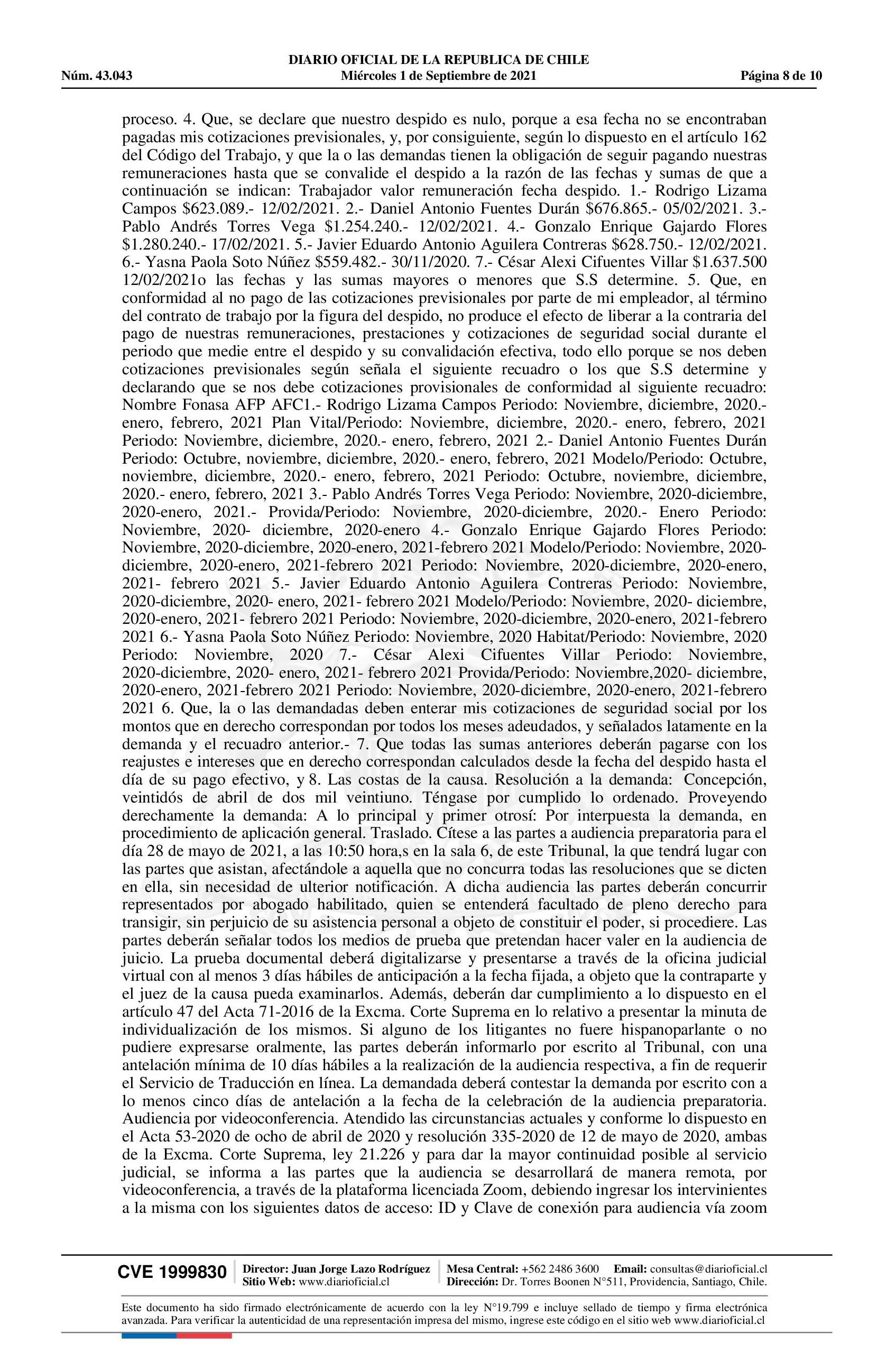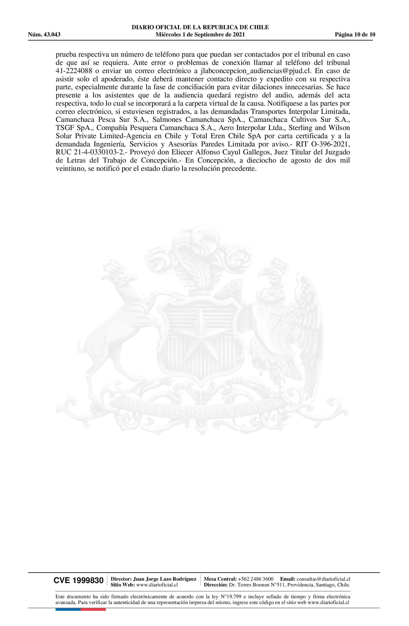 Notificación 01-09-2021 Diario Oficial Edición Electrónica |