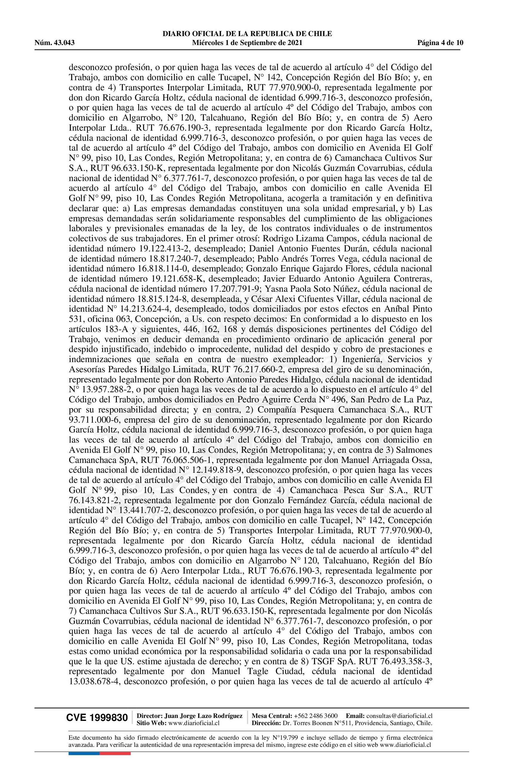 | Fuente: | Diario Oficial Edición Electrónica (Diario Oficial de Chile - 3 Public. Judiciales) | Página(s): | 1033-1042 |