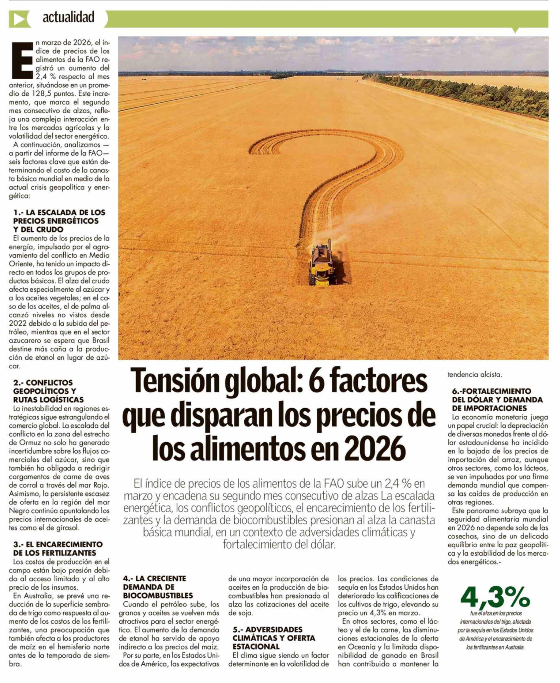 | Título: | Tensión global: 6 factores que disparan los precios de los alimentos en 2026 |