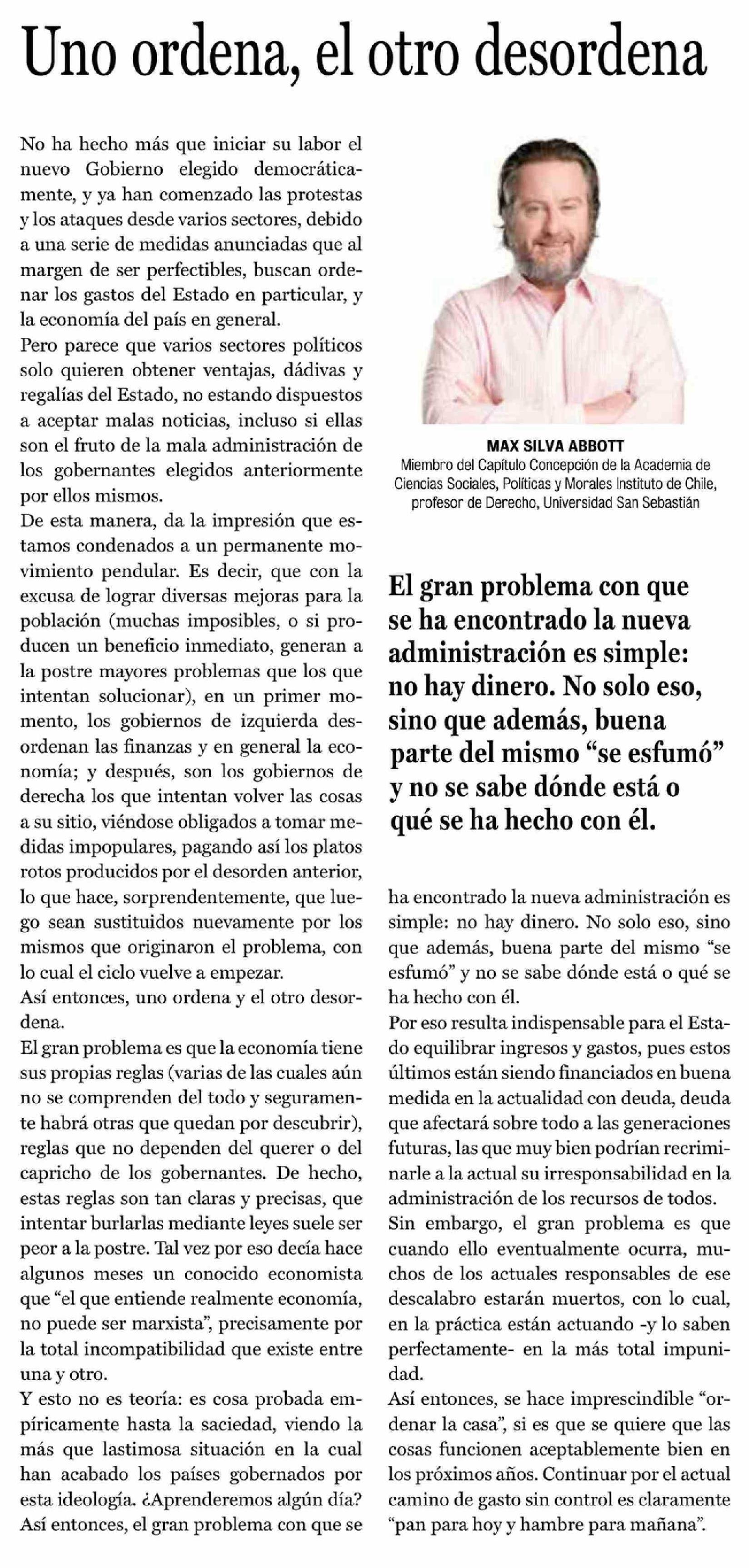 Columnas de Opinión: Uno ordena, el otro desordena 27-03-2026 La Prensa de Curicó |
