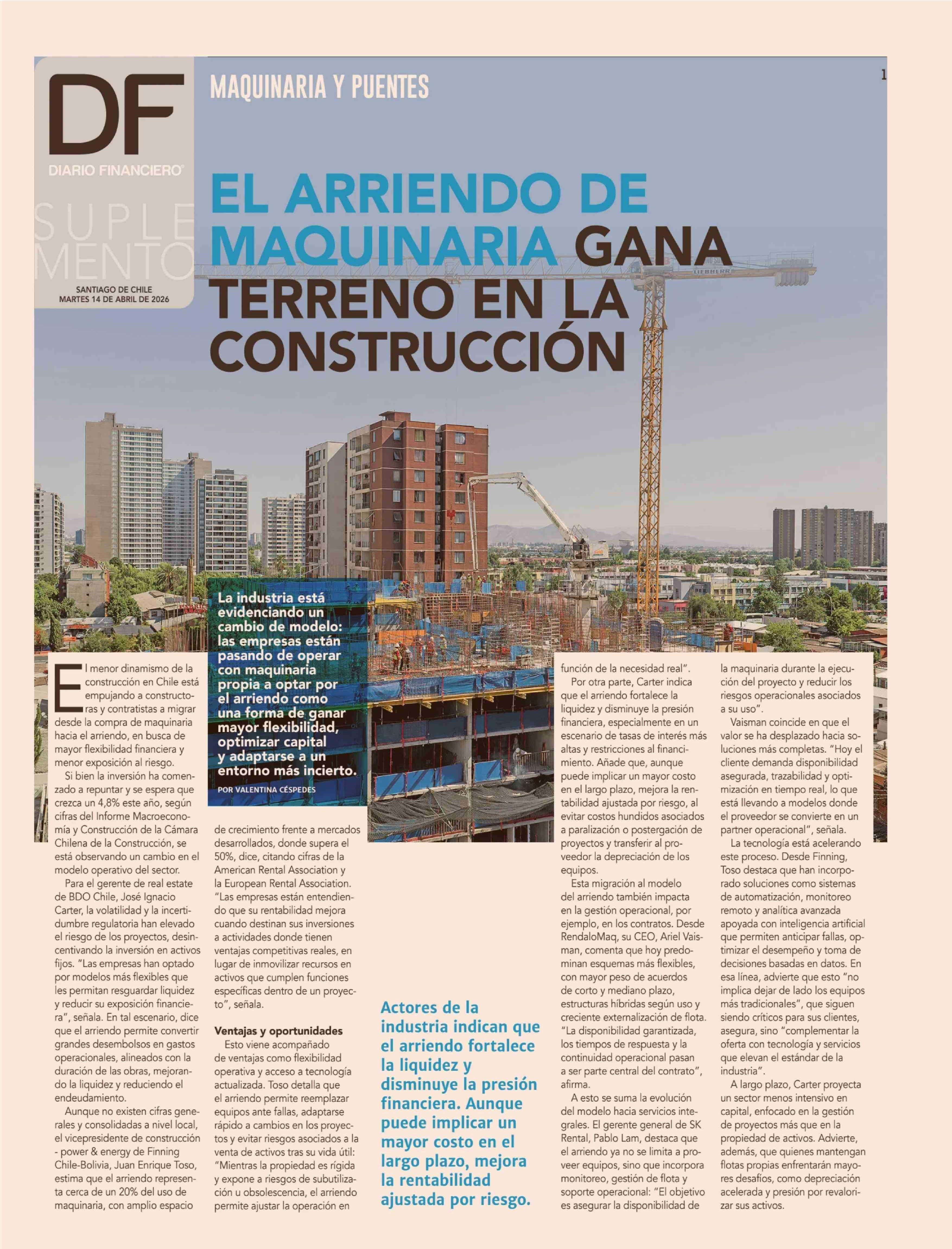 Título: EL ARRIENDO DE MAQUINARIA GANA TERRENO EN LA CONSTRUCCIÓN
