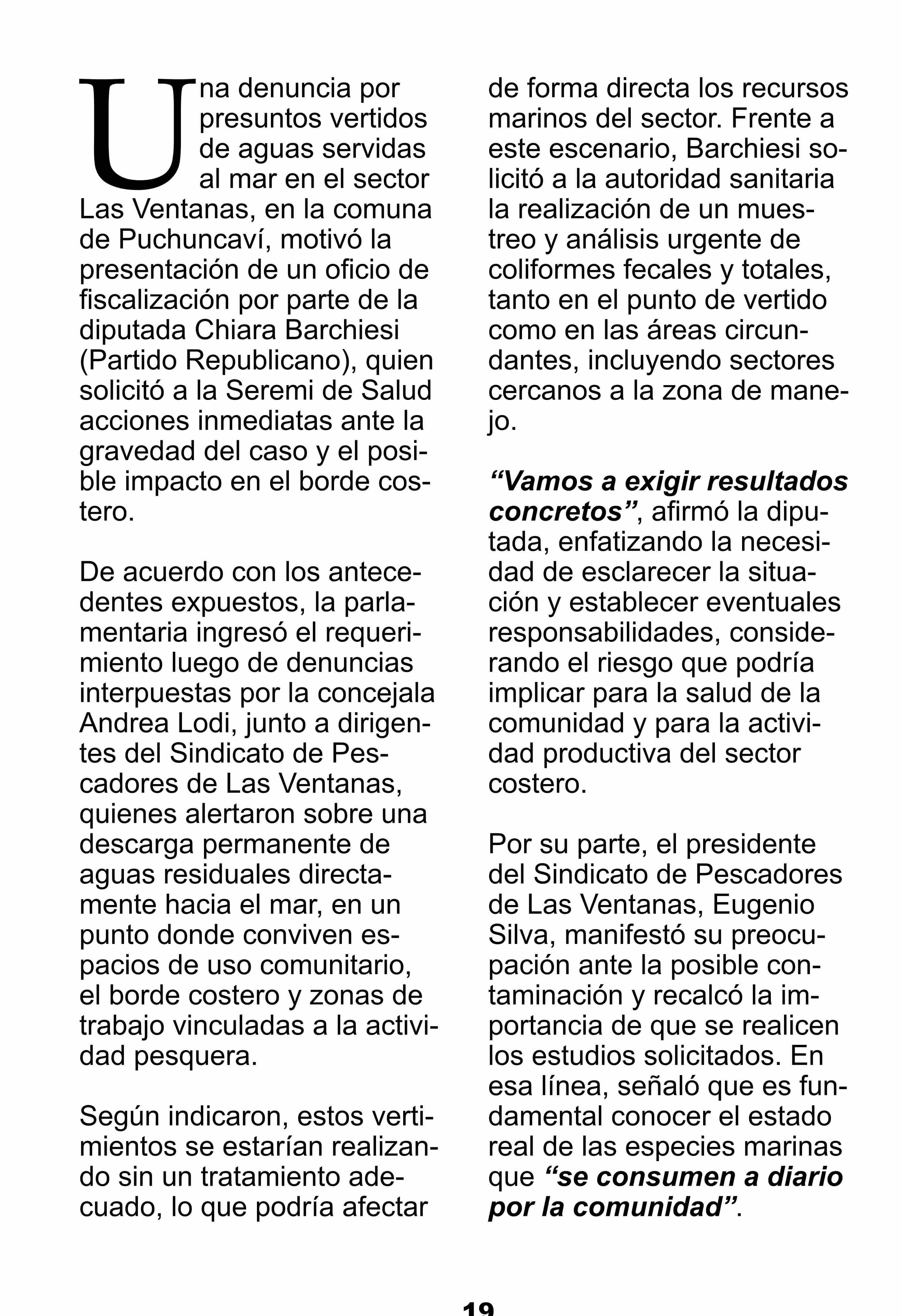 | Título: | Pescadores y diputada alertan en Puchuncaví por vertidos de aguas residuales en Las Ventanas |