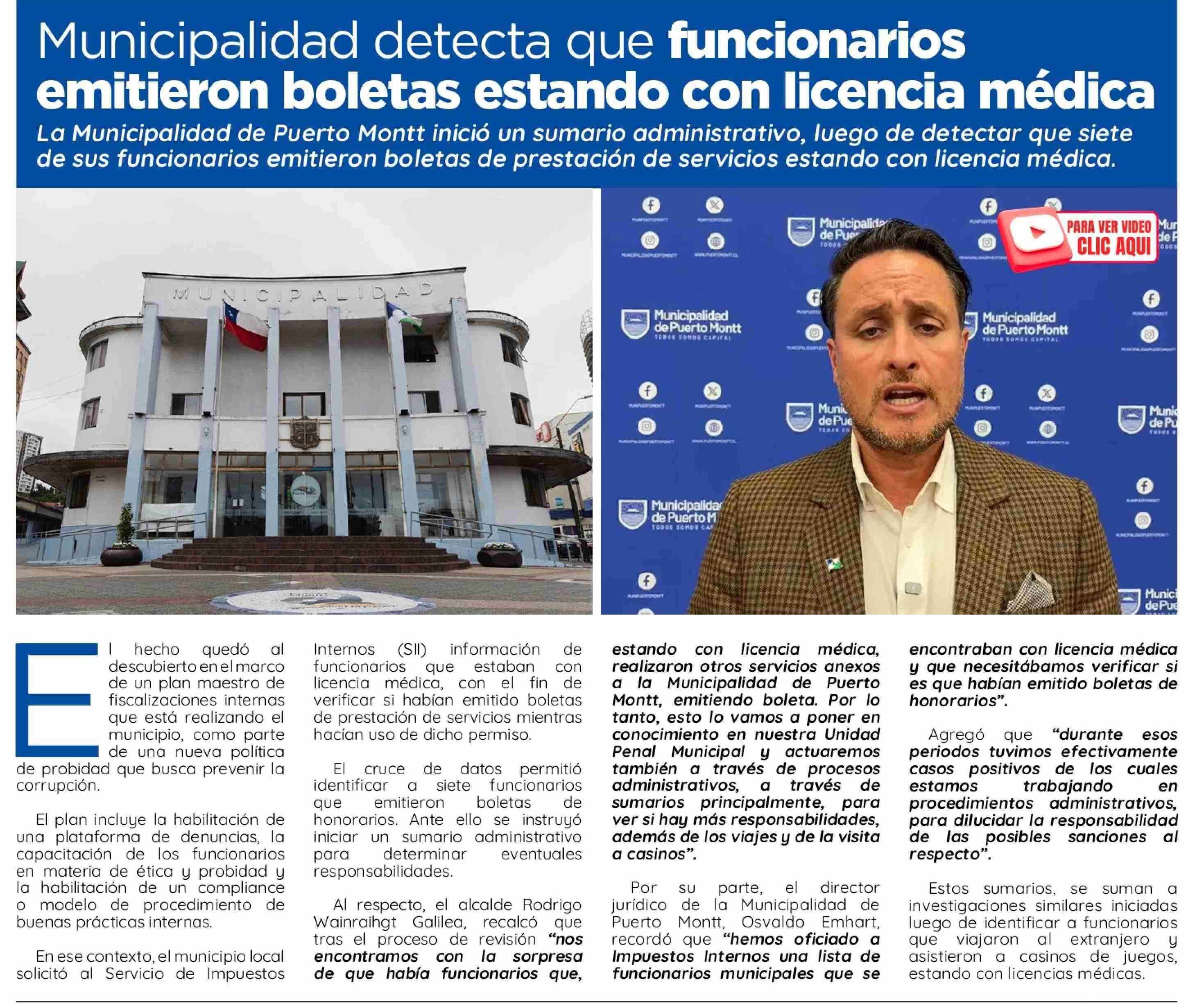Título: Municipalidad detecta que funcionarios emitieron boletas estando con licencia médica