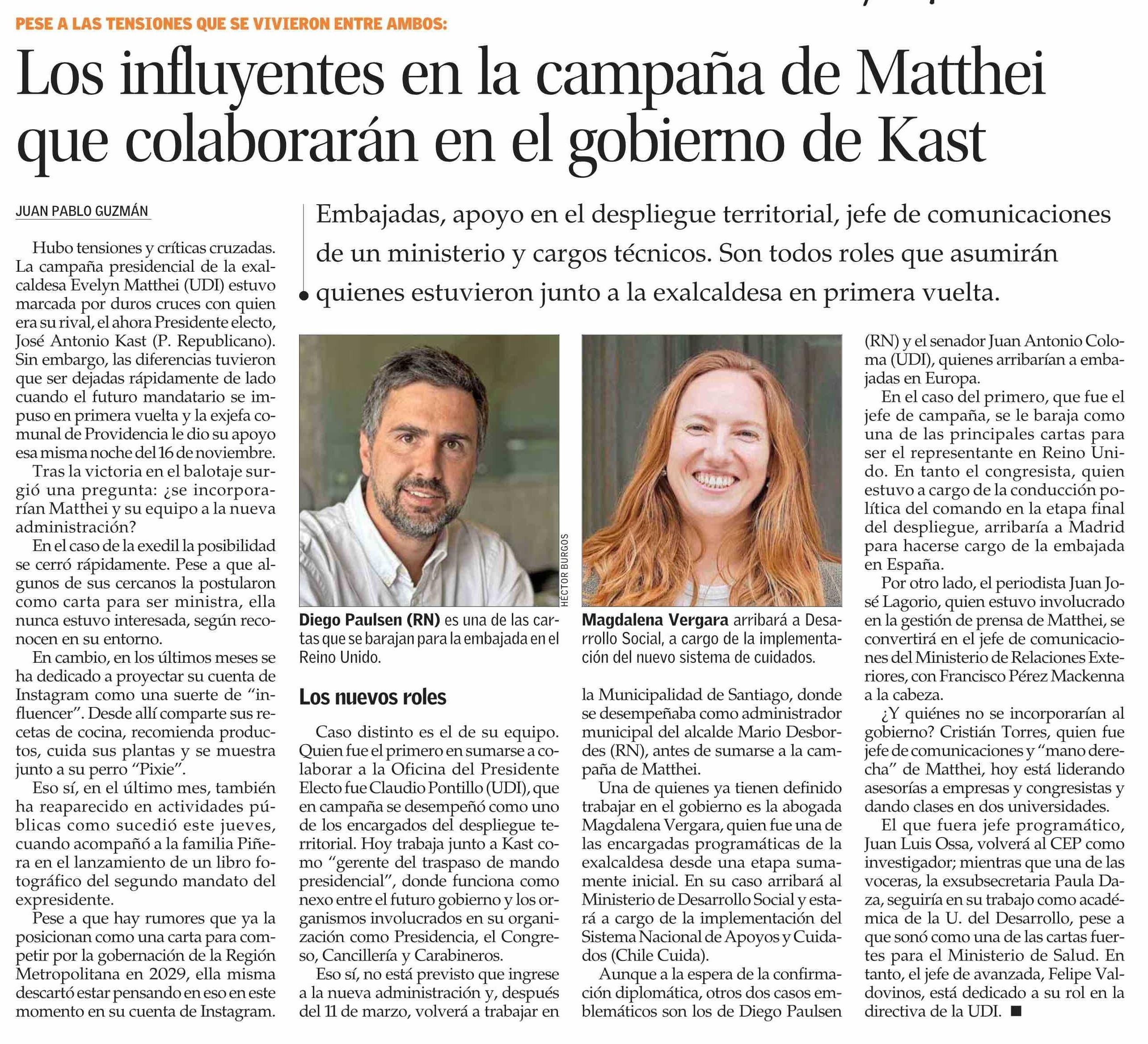 Título: Los influyentes en la campaña de Matthei que colaborarán en el gobierno de Kast