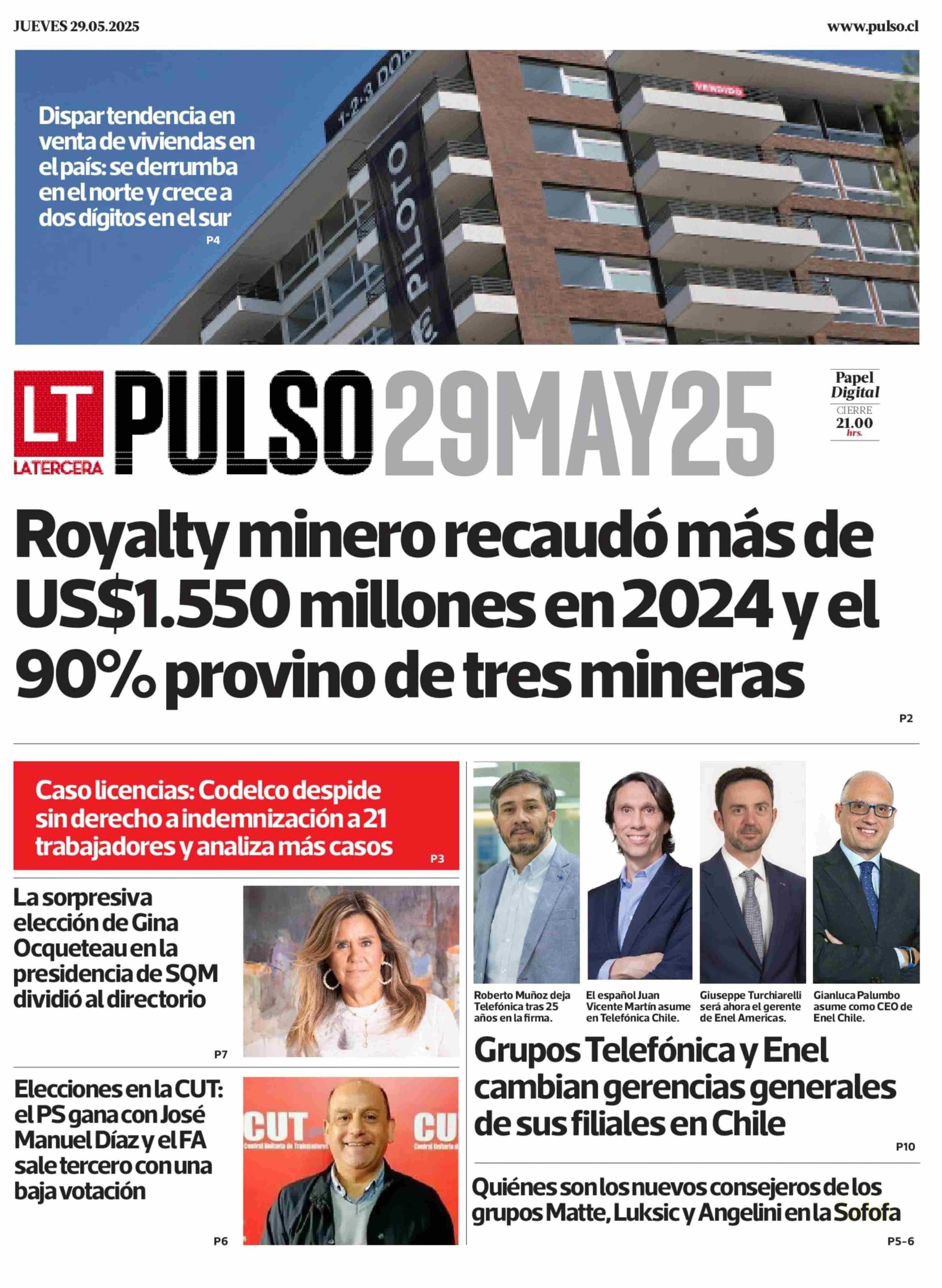 PORTADA LA TERCERA (PULSO) - CHILE 29-05-2025 La Tercera |