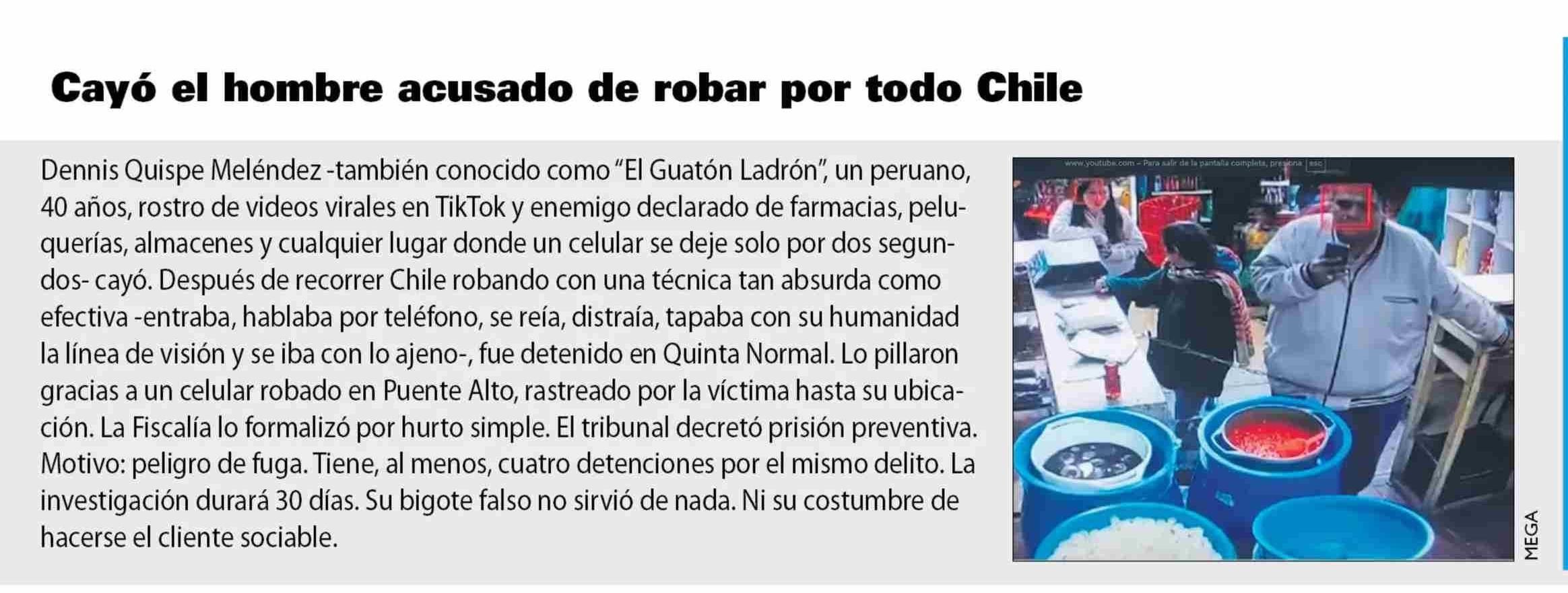 Cayó el hombre acusado de robar por todo Chile 12-06-2025 Las Últimas Noticias |