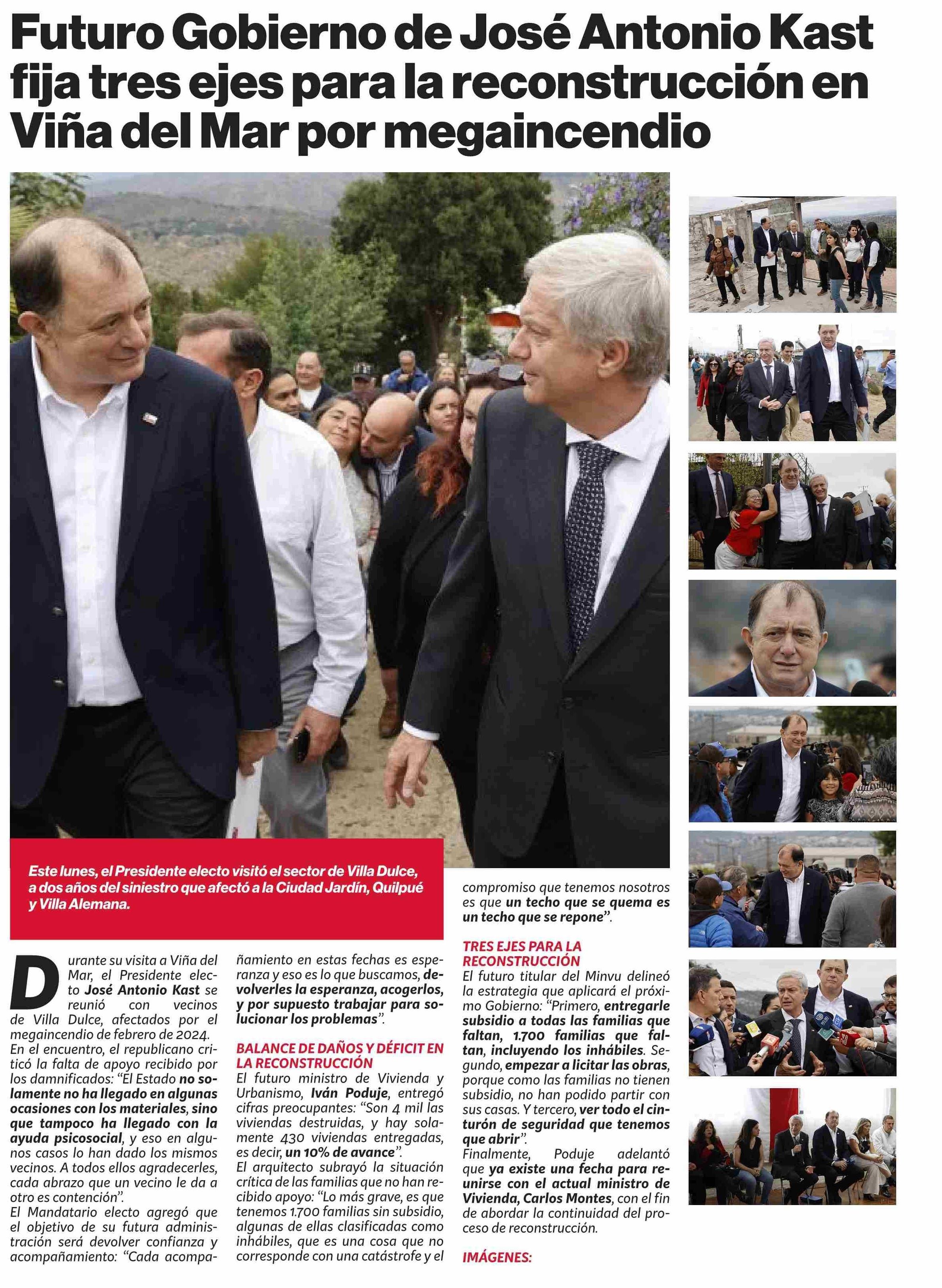 Futuro Gobierno de José Antonio Kast fija tres ejes para la reconstrucción en Viña del Mar por megaincendio 02-02-2026 Puranoticia.cl |