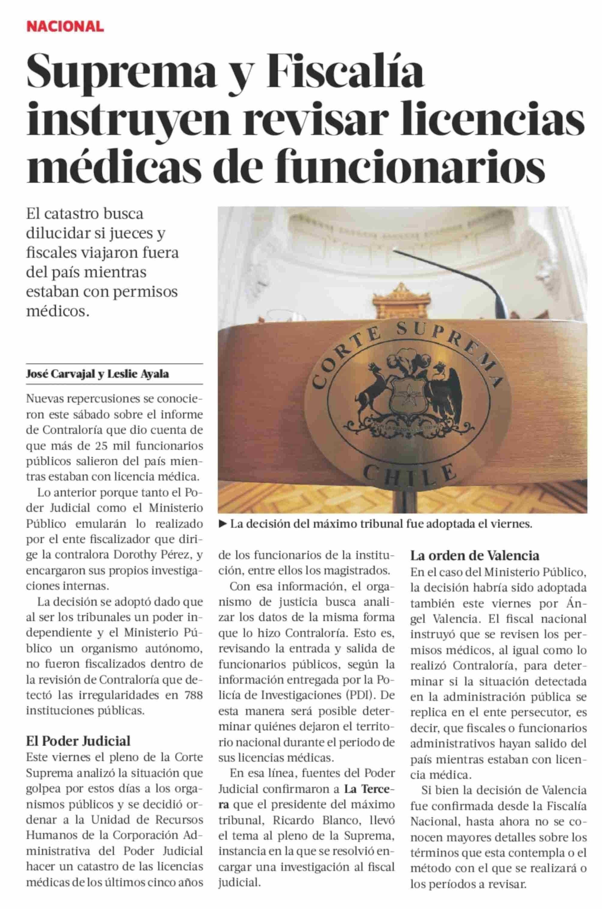 Suprema y Fiscalía instruyen revisar licencias 25-05-2025 La Tercera |
