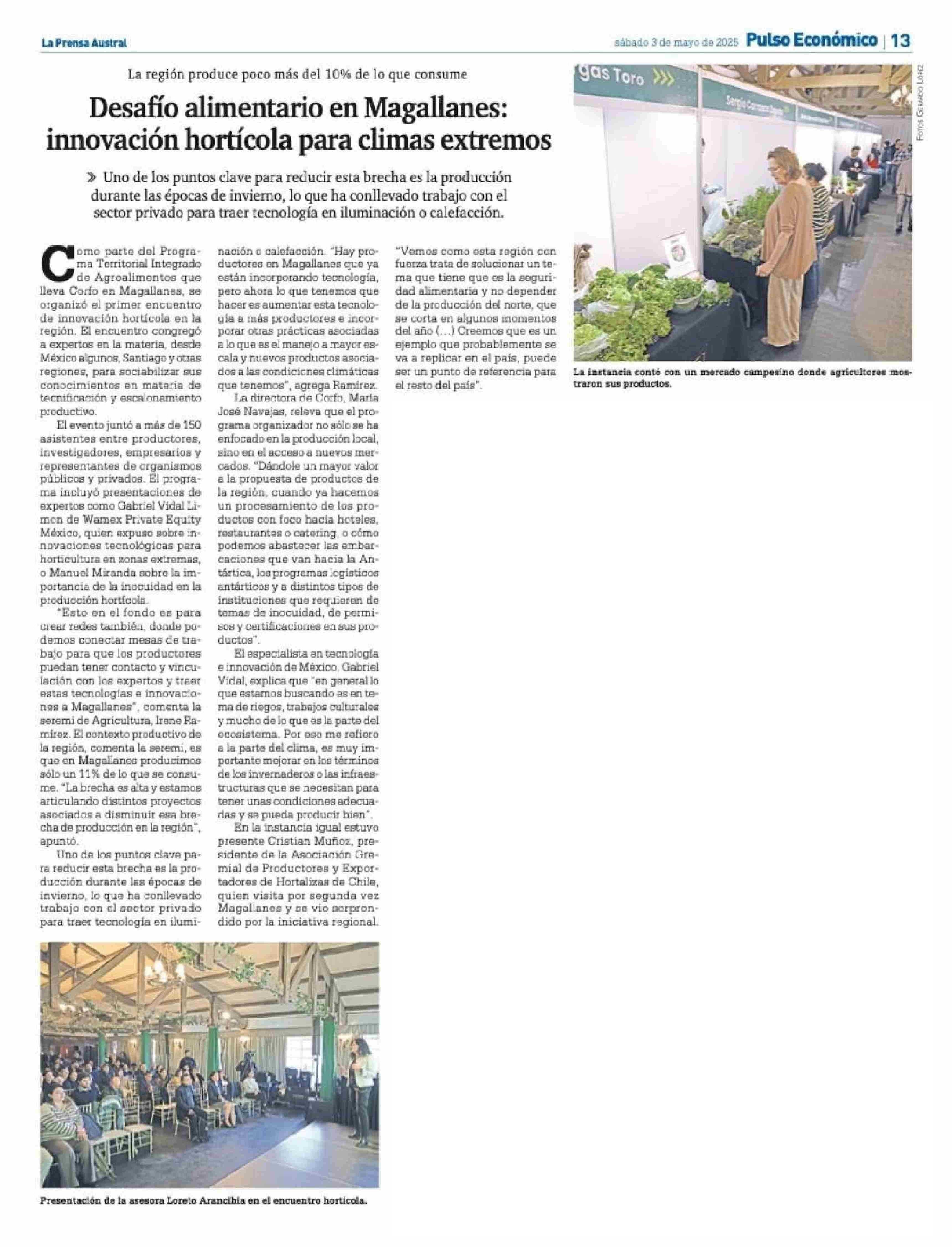 Desafío alimentario en Magallanes: innovación hortícola para climas extremos 03-05-2025 La Prensa Austral |