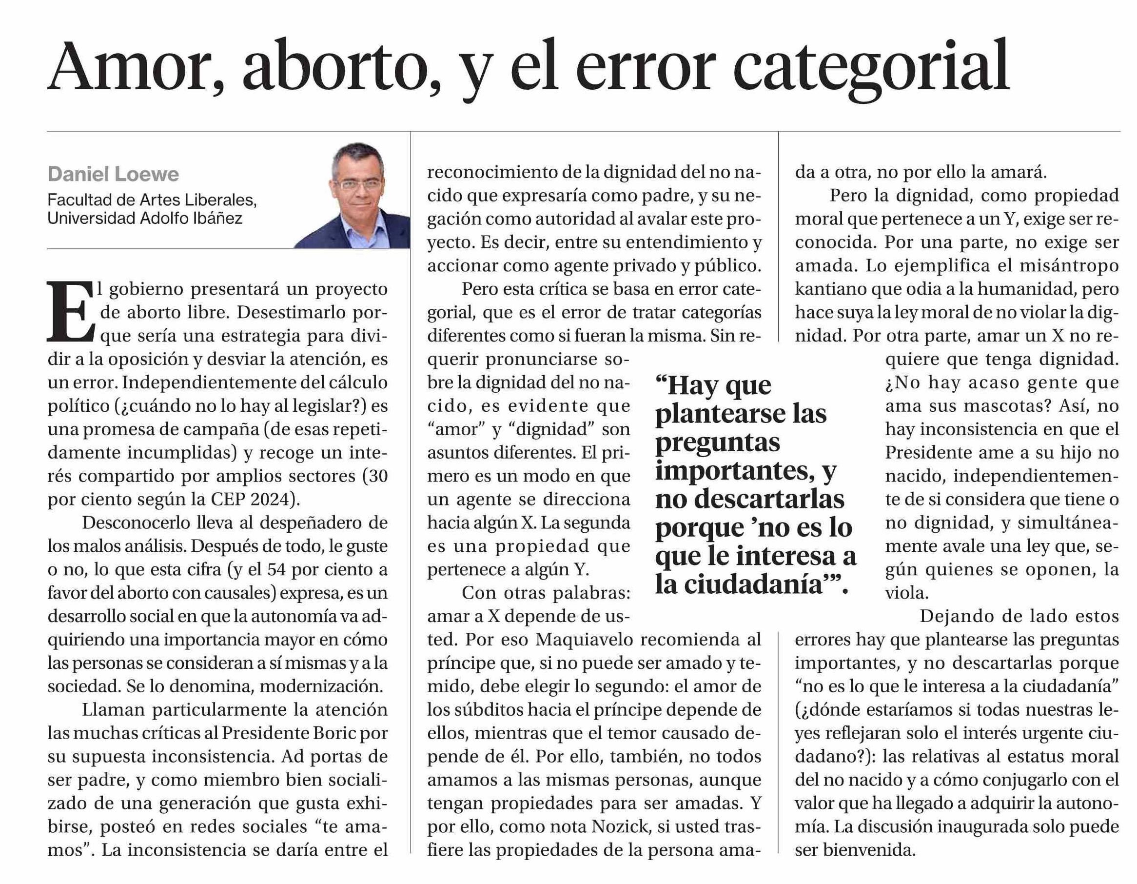Título: COLUMNAS DE OPINIÓN: Amor, aborto, y el error categorial