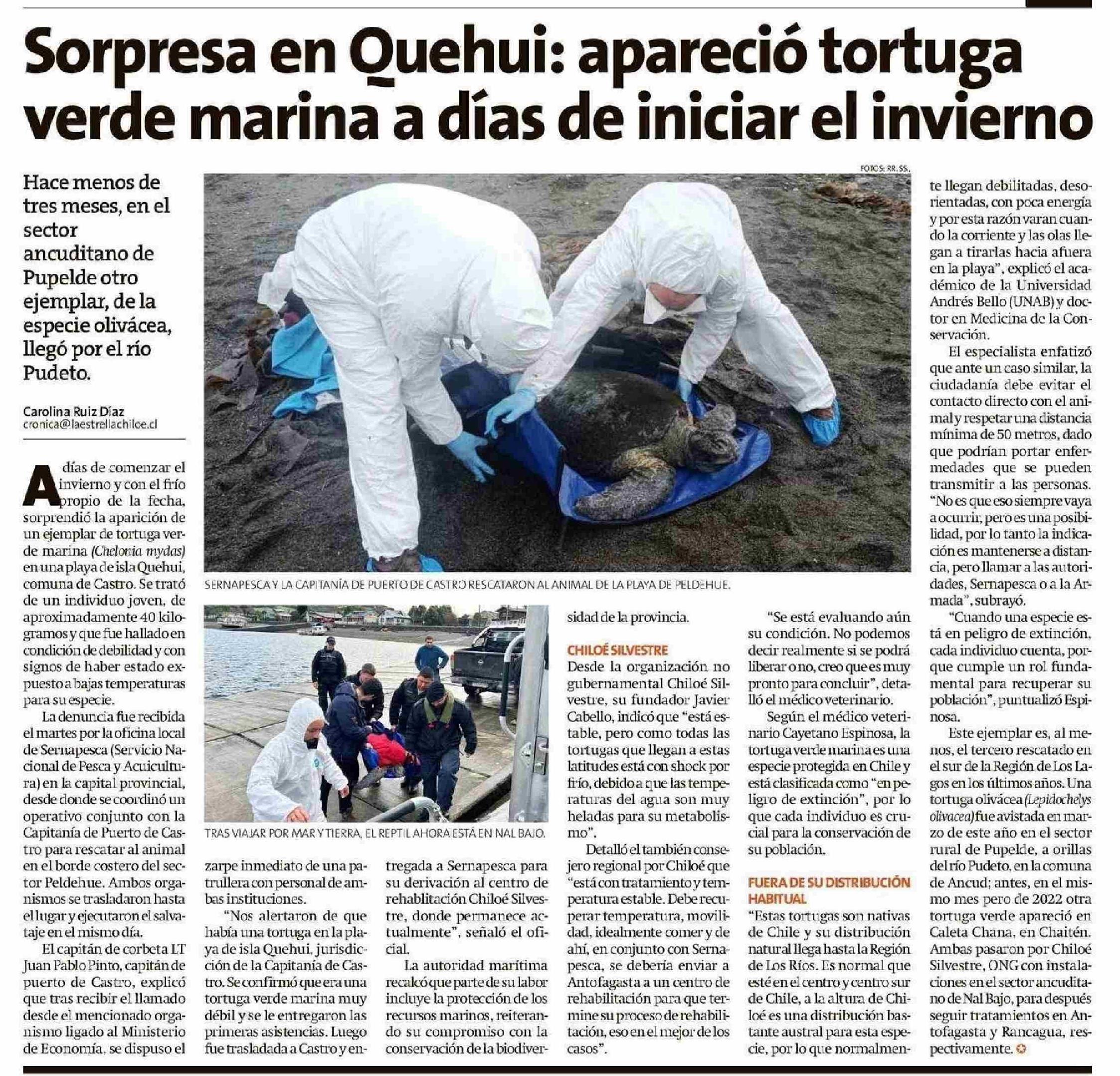 | Título: | Sorpresa en Quehui: apareció tortuga verde marina a días de iniciar el invierno |