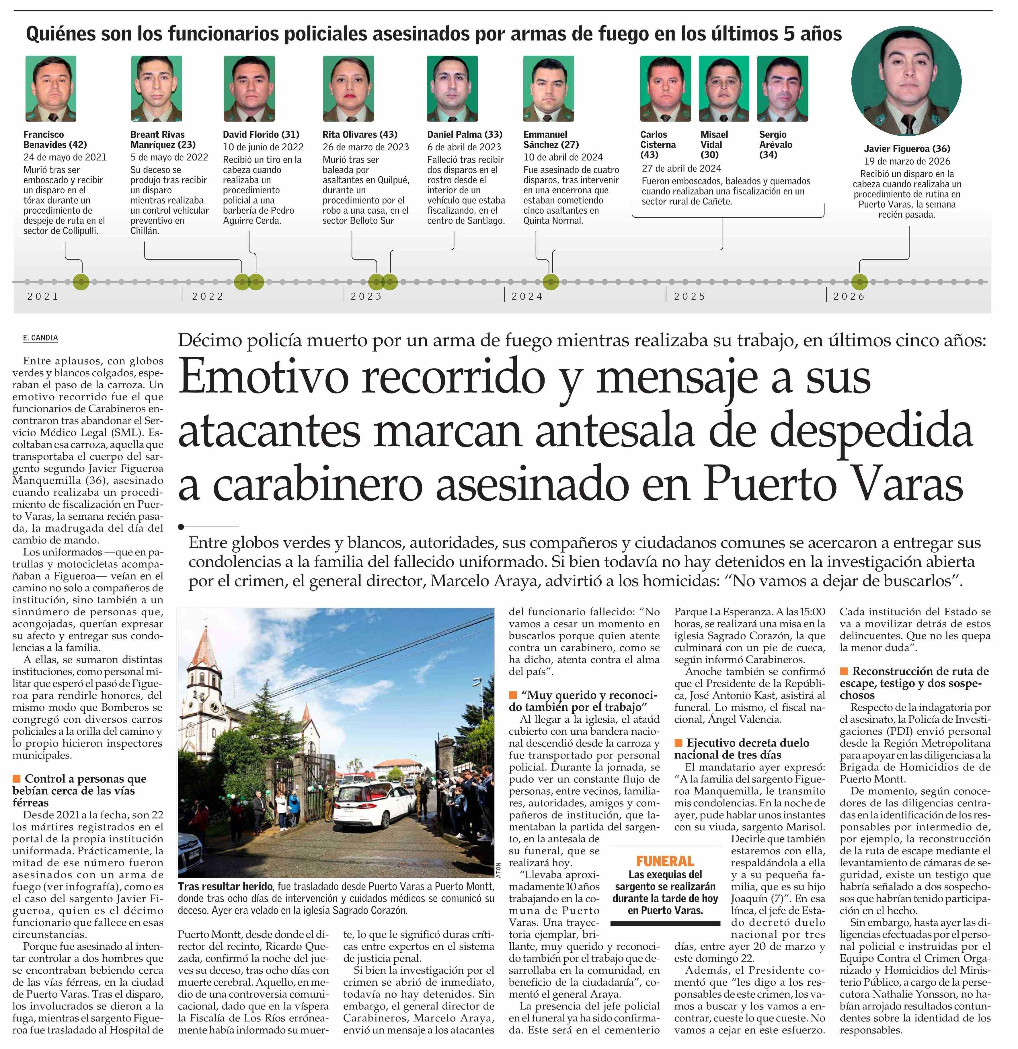 Título: Emotivo recorrido y mensaje a sus atacantes marcan antesala de despedida a carabinero asesinado en Puerto Varas
