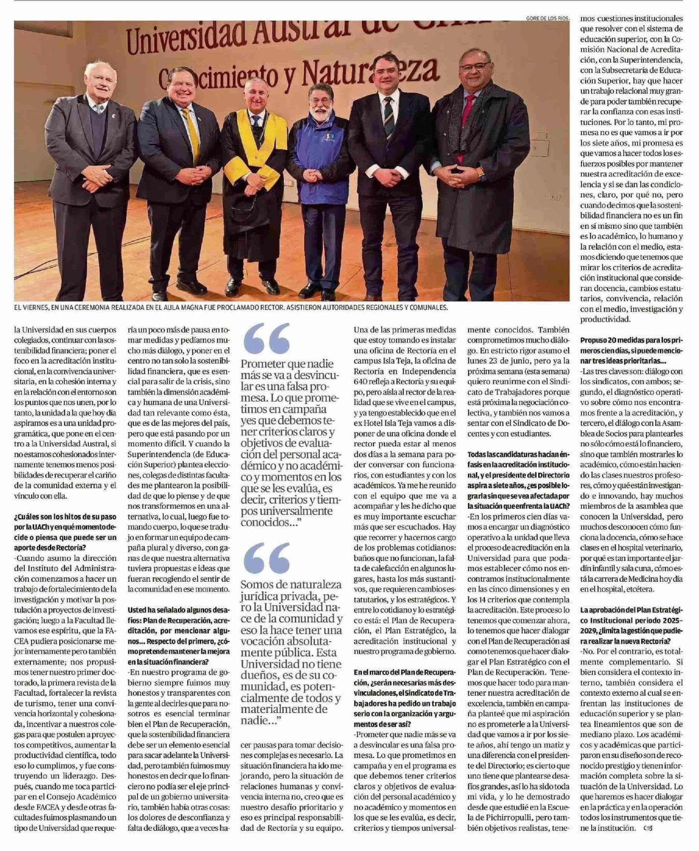 "Abordaremos los problemas cotidianos y también los más sustantivos y estratégicos ... " 16-06-2025 Diario Austral Región de Los Ríos |