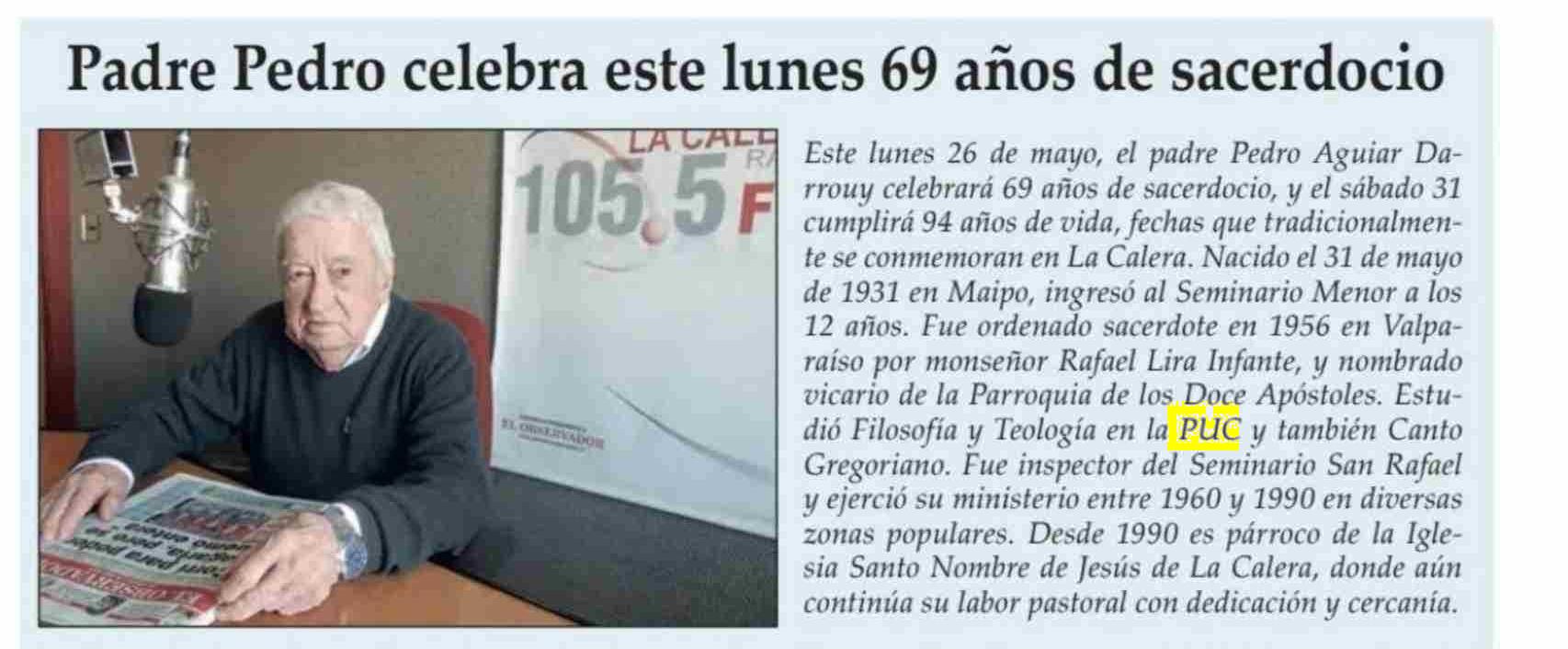 | Título: | Padre Pedro celebra este lunes 69 años de sacerdocio |