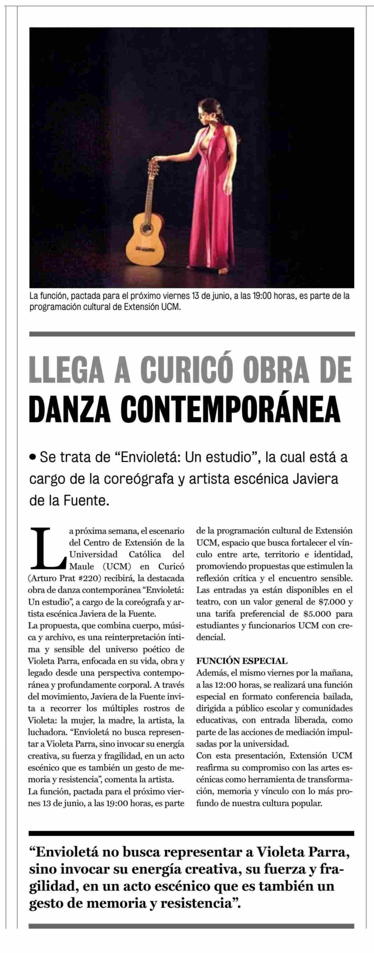 LLEGA A CURICÓ OBRA DE DANZA CONTEMPORÁNEA 06-06-2025 La Prensa de Curicó |