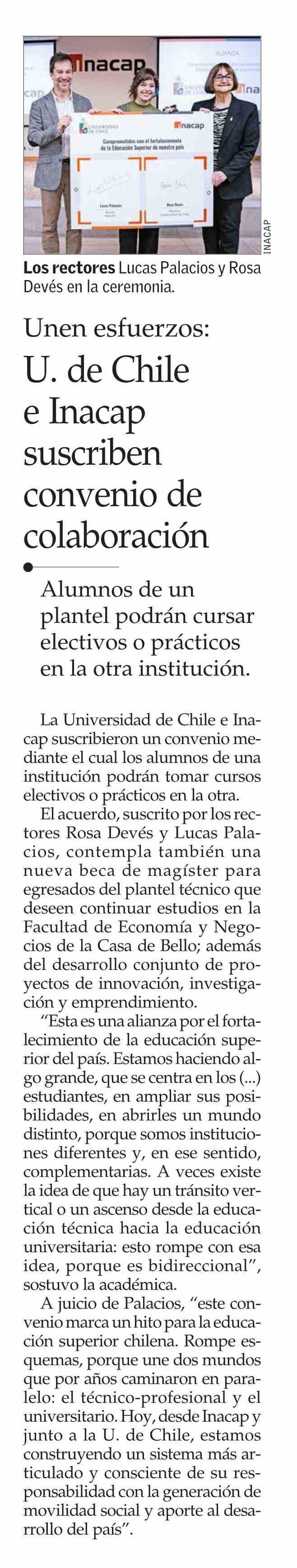 U. de Chile e Inacap suscriben convenio de colaboración 19-07-2025 El Mercurio |