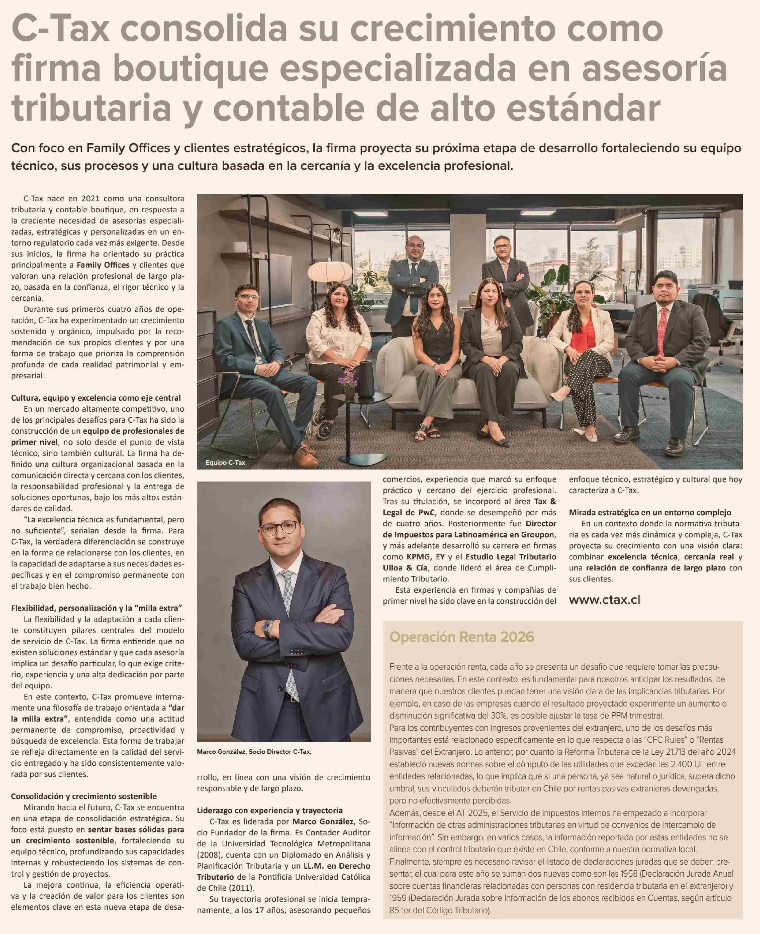 Título: C-Tax consolida su crecimiento como firma boutique especializada en asesoría tributaria y contable de alto estándar