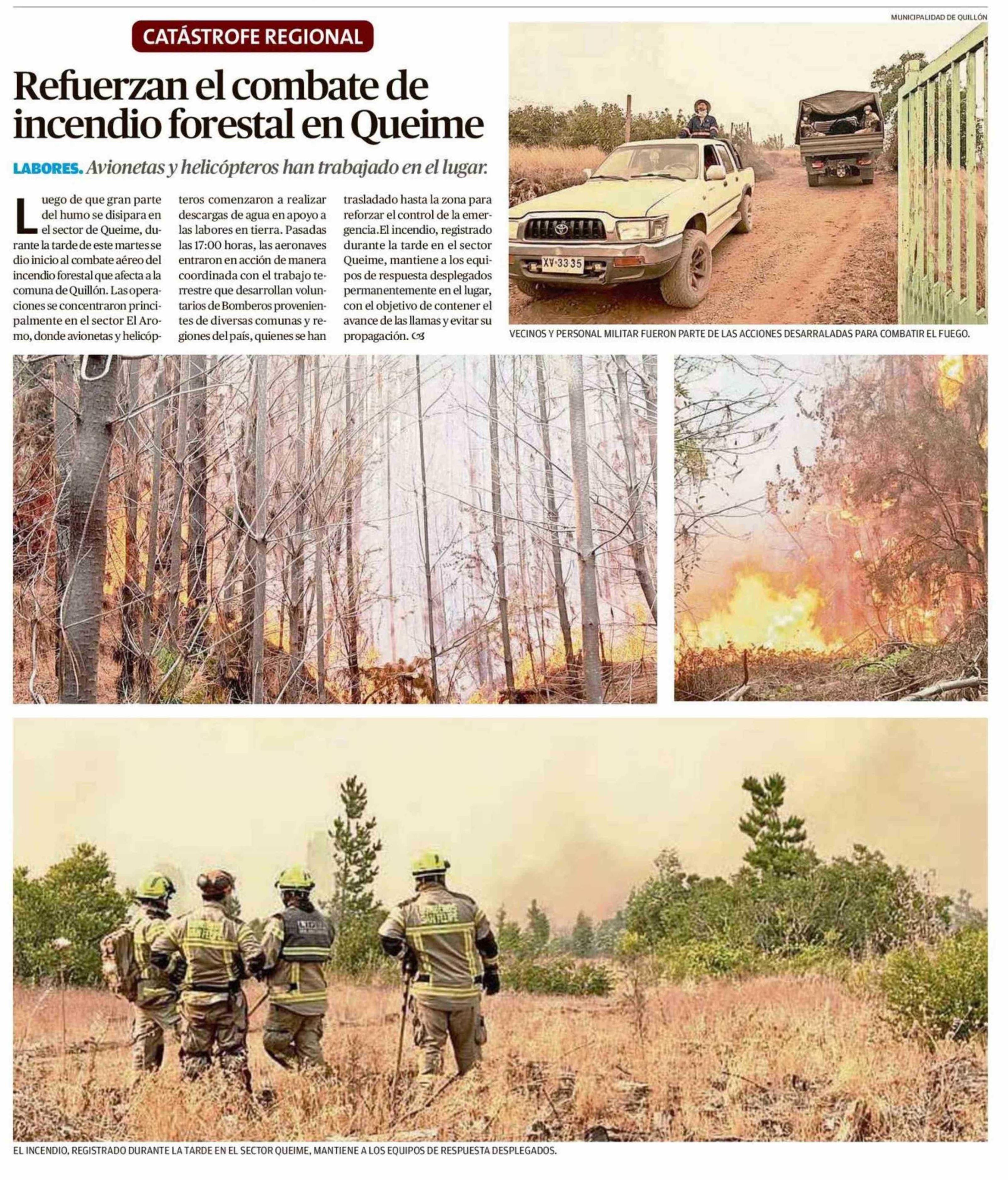 Refuerzan el combate de incendio forestal en Queime 22-01-2026 Crónica de Chillán |