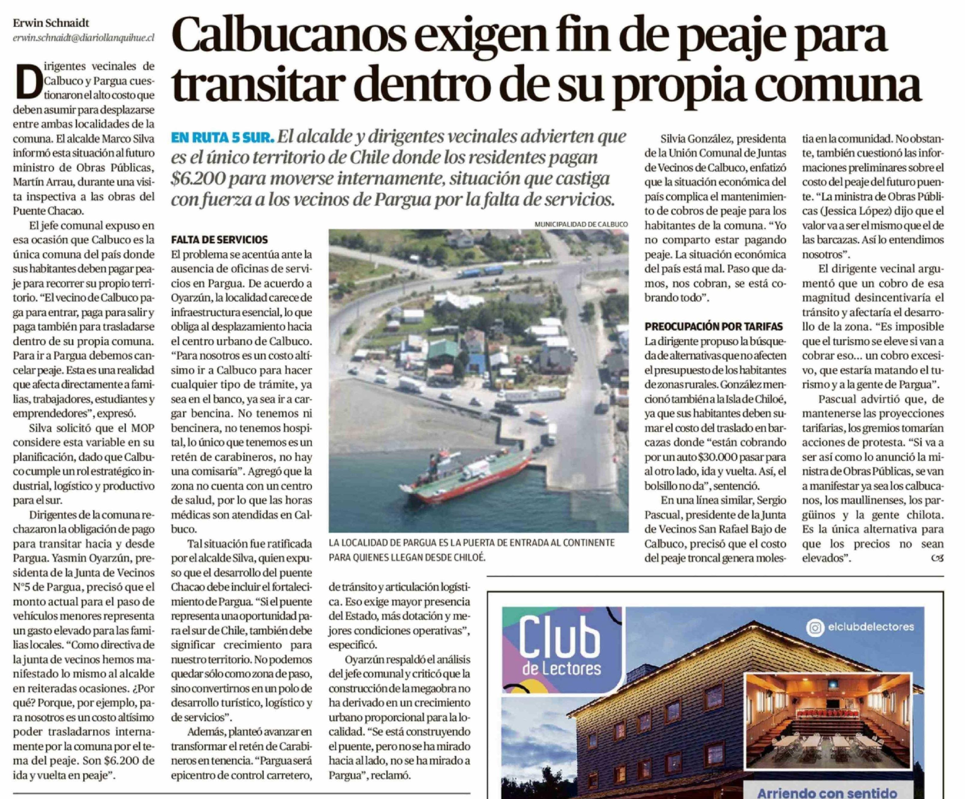 Título: Calbucanos exigen fin de peaje para transitar dentro de su propia comuna