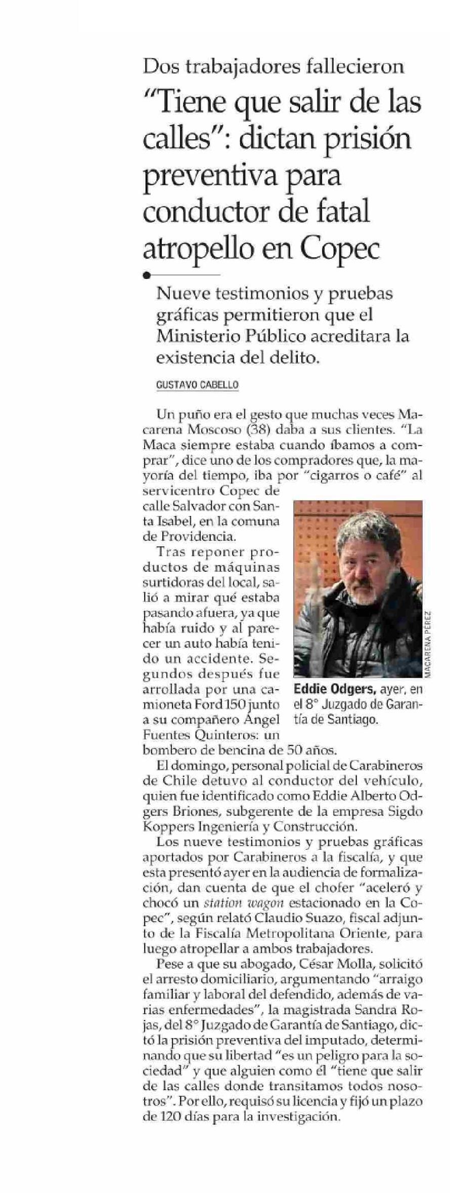 “Tiene que salir de las calles”: dictan prisión preventiva para conductor de fatal atropello en Copec 27-05-2025 El Mercurio |