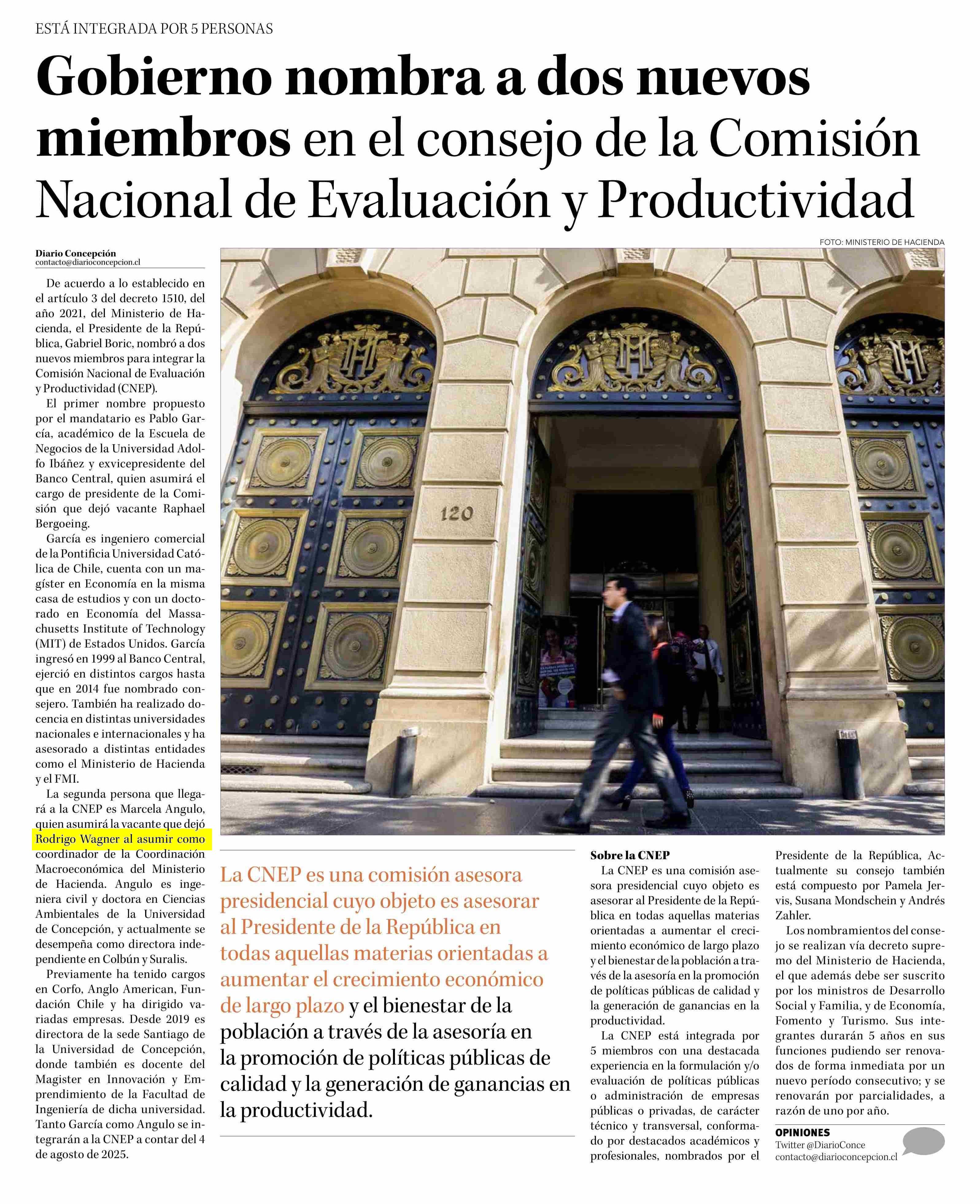 Gobierno nombra a dos nuevos miembros en el consejo de la Comisión Nacional de Evaluación y Productividad 05-08-2025 Diario Concepción |