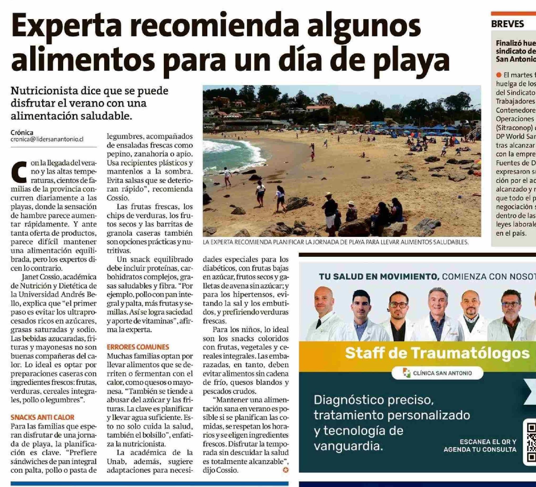 Experta recomienda algunos alimentos para un día de playa 15-01-2026 El Líder |