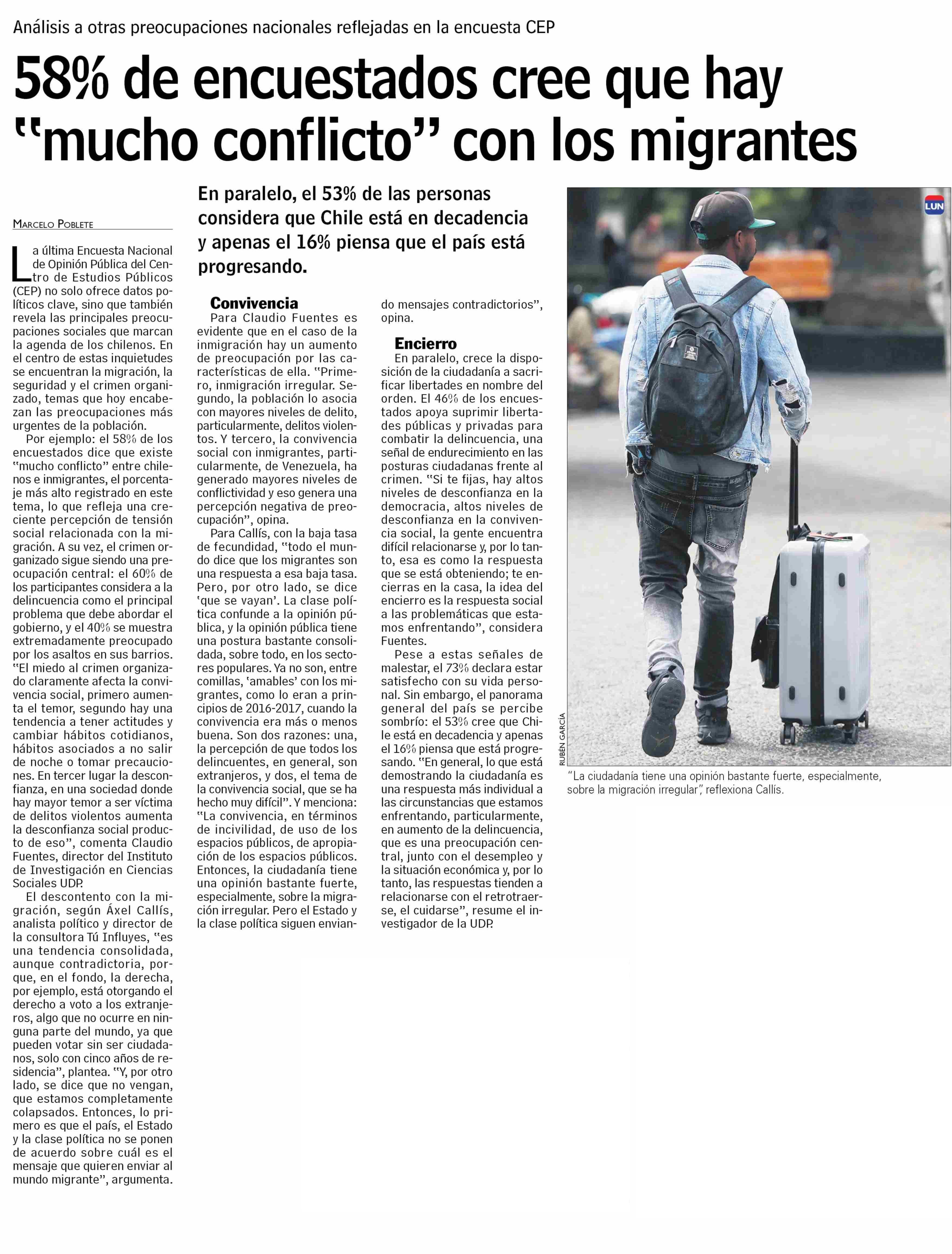 58% de encuestados cree que hay "mucho conflicto" con los migrantes 08-05-2025 Las Últimas Noticias |