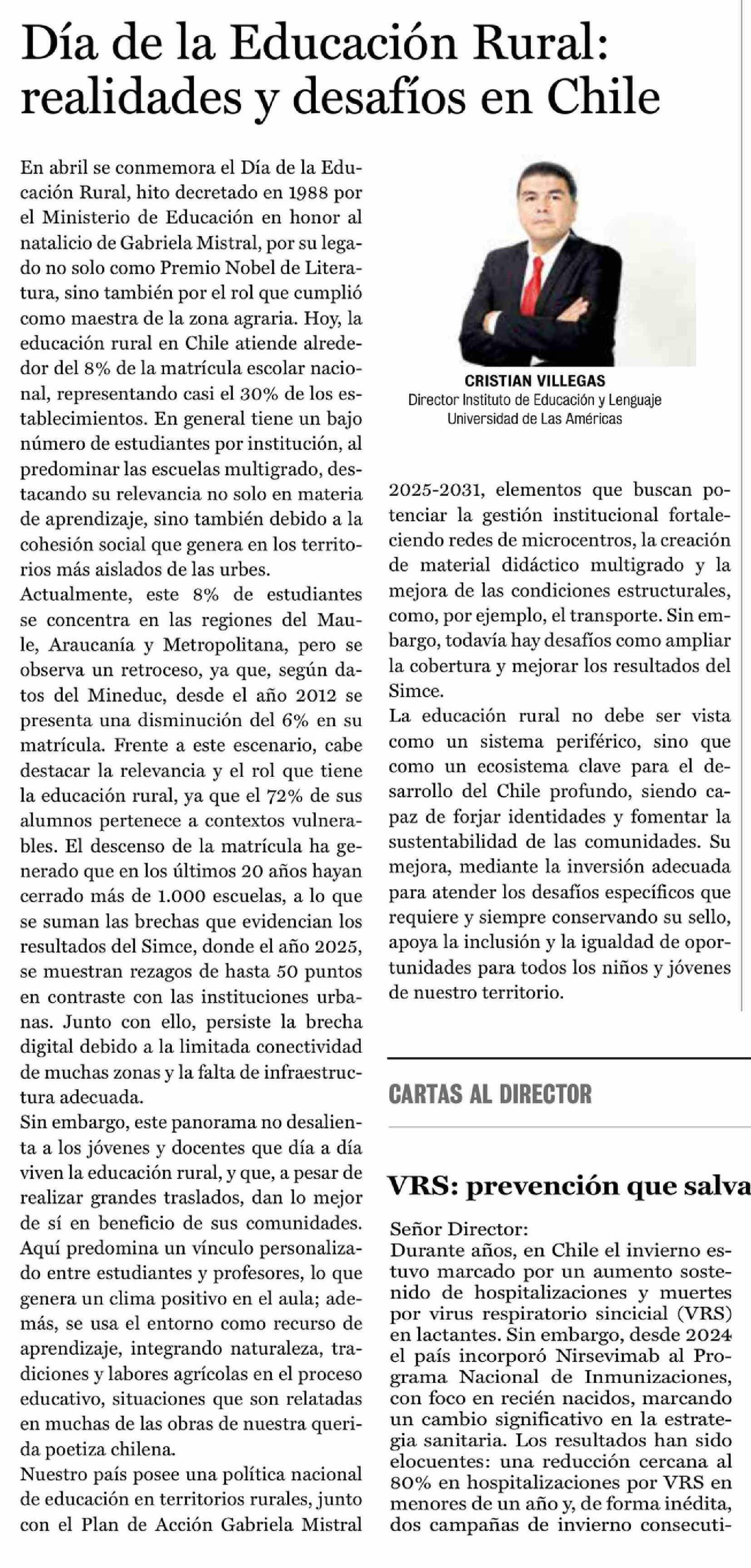 Título: Cartas: Día de la Educación Rural: realidades y desafíos en Chile