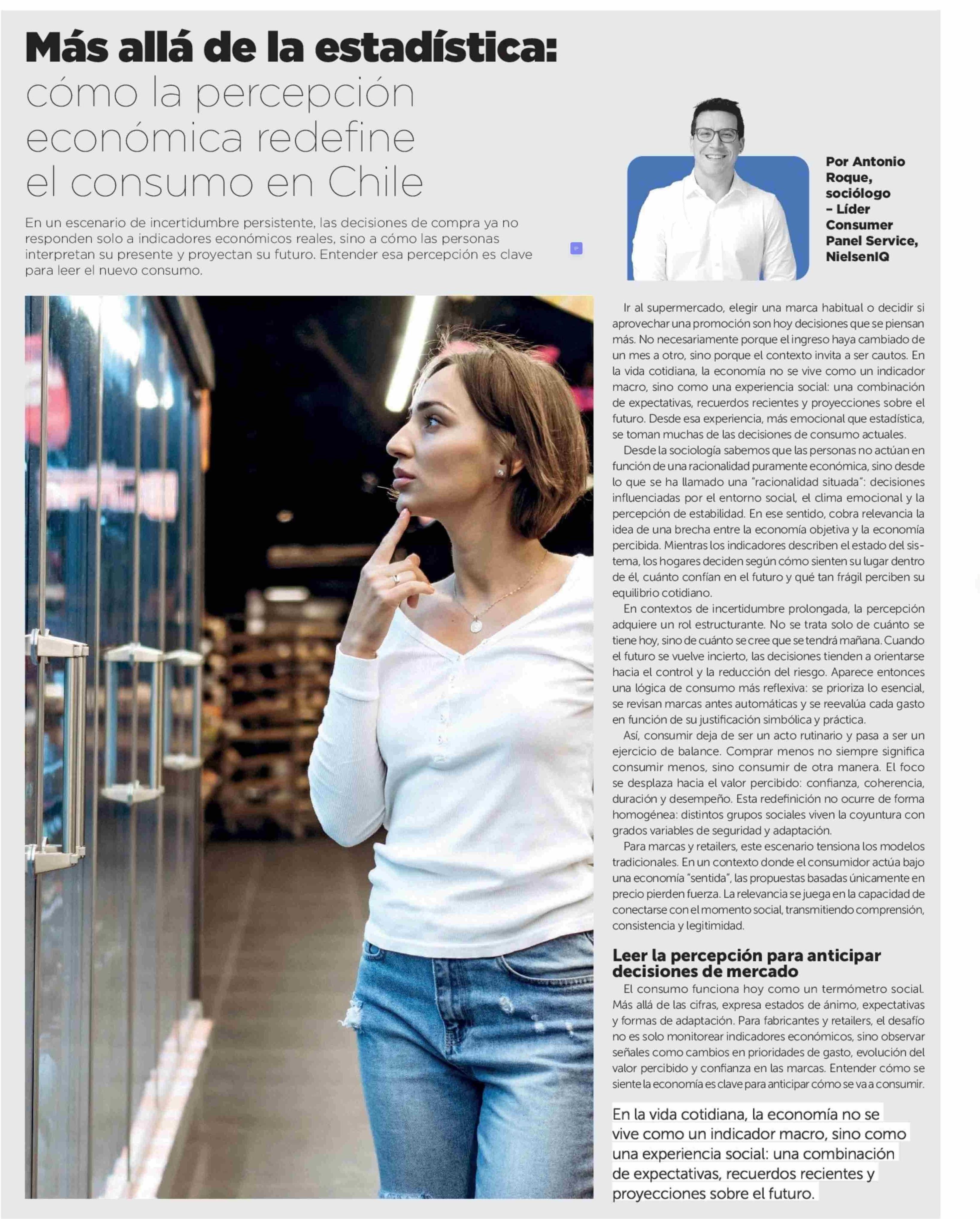 Más allá de la estadística: cómo la percepción económica redefine el consumo en Chile 26-04-2026 La Tercera |
